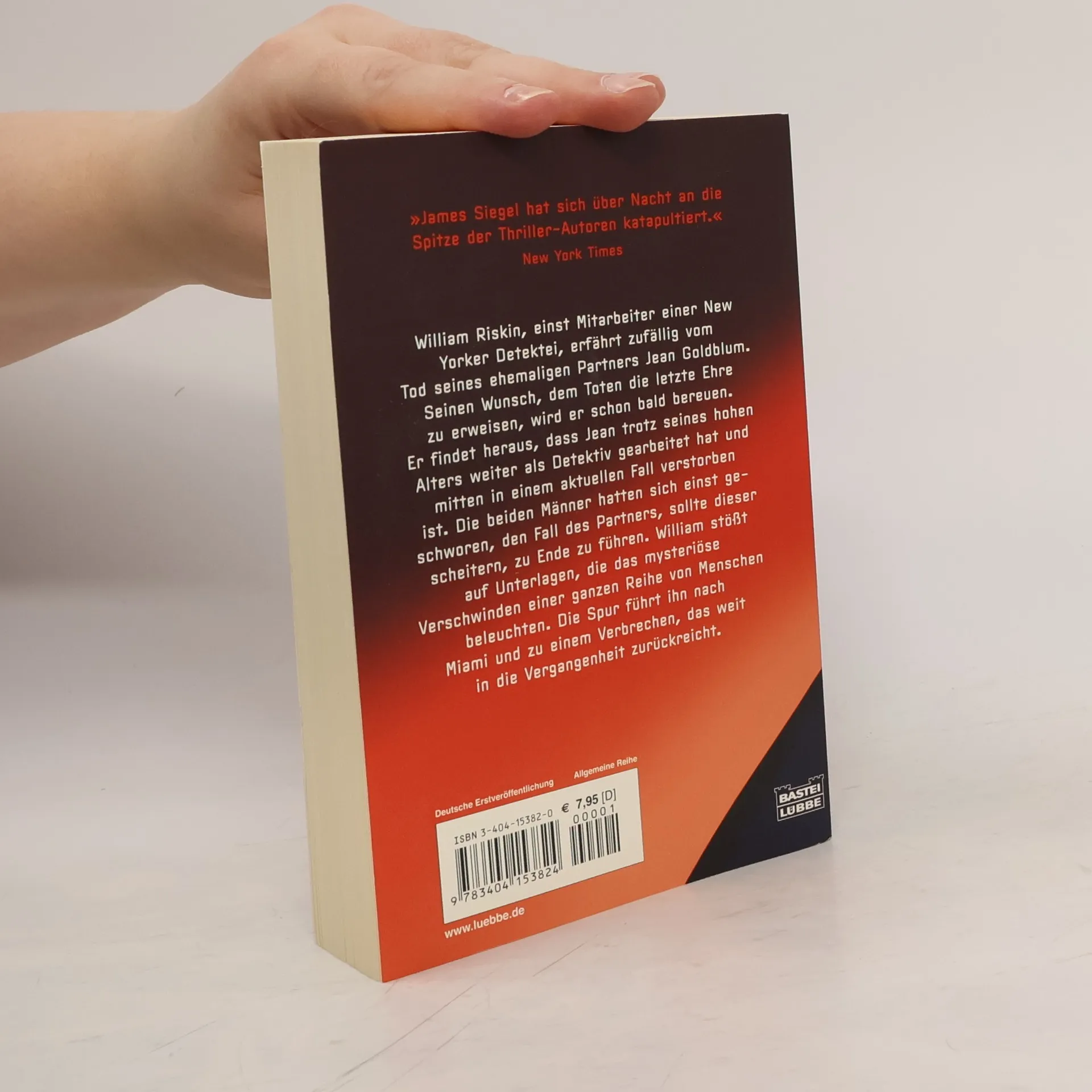 William Riskin, einst Mitarbeiter einer New Yorker Detektei, erfährt zufällig vom Tod seines ehemaligen Partners Jean Goldblum. Seinen Wunsch, dem Toten die letzte Ehre zu erweisen, wird er schon bald bereuen. Er findet heraus, dass Jean trotz seines hohen Alters weiter als Detektiv gearbeitet hat und mitten in einem aktuellen Fall verstorben ist. Die beiden Männer hatten sich einst geschworen, den Fall des Partners, sollte dieser scheitern, zu Ende zu führen. William stößt auf Unterlagen, die das mysteriöse Verschwinden einer ganzen Reihe von Menschen beleuchten. Die Spur führt ihn nach Miami und zu einem Verbrechen, das weit in die Vergangenheit zurückreicht. "James Siegel hat sich über Nacht an die Spitze der Thriller-Autoren katapultiert." New York Times