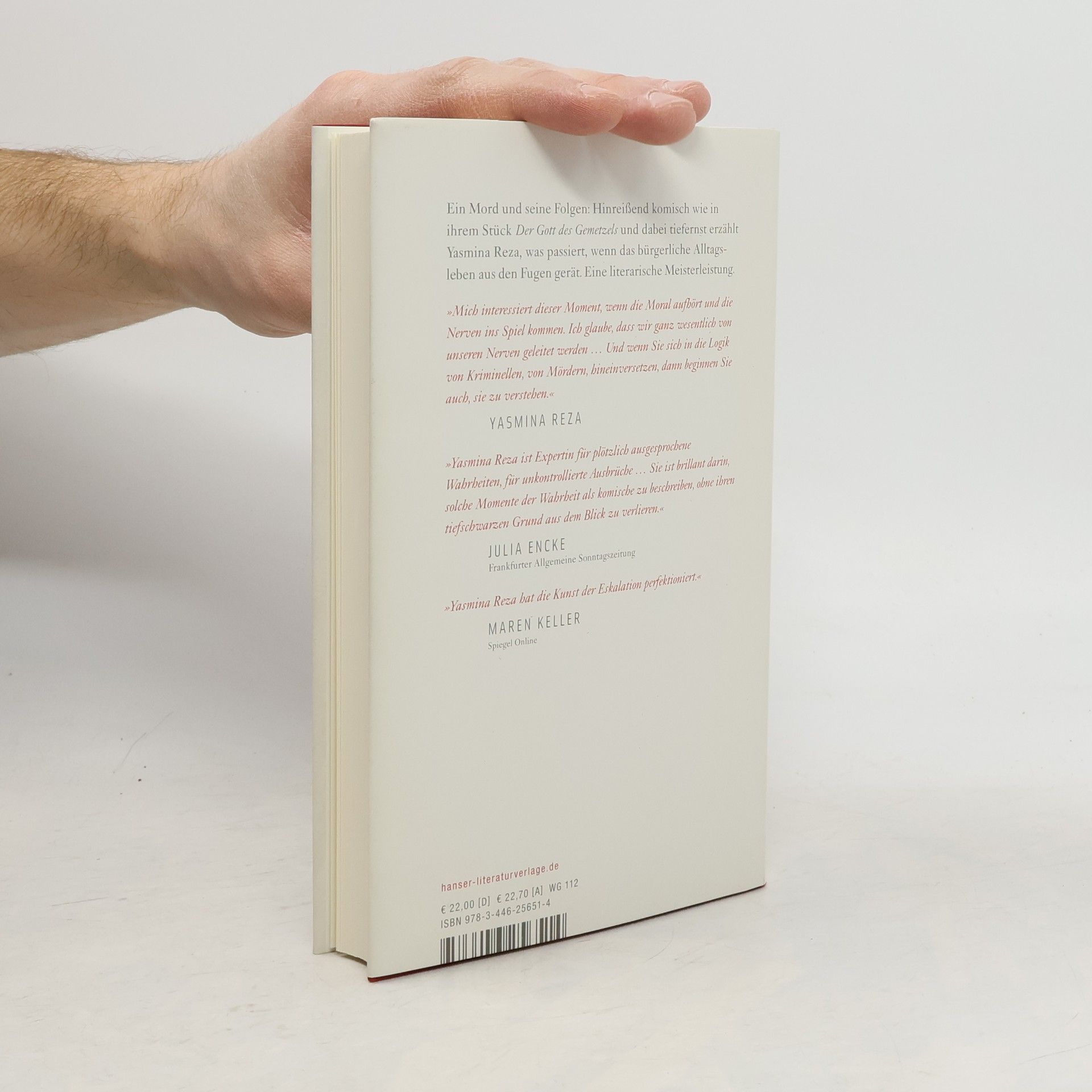 Elisabeth gibt eine Frühlingsparty. Sie ist keine erfahrene Gastgeberin und sehr nervös. Viel zu viele Gläser und Stühle. Dennoch scheint alles gut zu gehen, bis sich Jean-Lino und Lydie, die Nachbarn von oben, wegen eines Bio-Hühnchens in die Haare kriegen. Als Elisabeth und ihr Mann schon im Bett liegen, klingelt es. Es ist Jean-Lino, der erzählt, dass er Lydie gerade erwürgt hat. Elisabeth wird er bitten, die Leiche mit ihm zusammen aus dem Haus zu schaffen. – Yasmina Reza hat einen unglaublich komischen und dabei tiefernsten Roman geschrieben, der den Leser von einer grotesken Abendgesellschaft in die Abgründe der Paarbeziehung führt und von einer ganz besonderen Freundschaft erzählt.