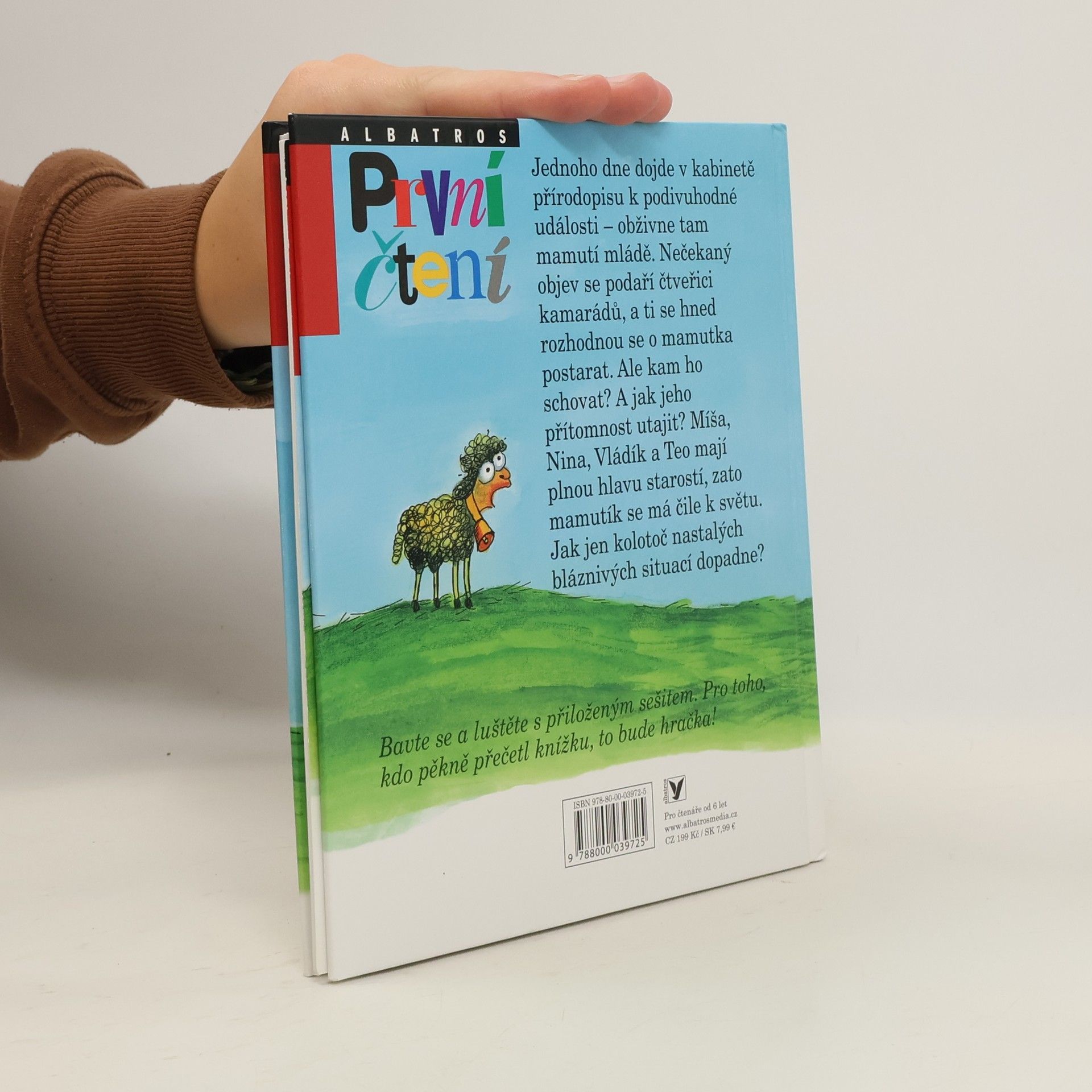 Jednoho dne dojde v kabinetě přírodopisu k podivuhodné události – obživne tam mamutí mládě. Nečekaný objev se podaří čtveřici kamarádů, a ti se hned rozhodnou se o mamutka postarat. Ale kam ho schovat? A jak jeho přítomnost utajit? Míša, Nina, Vládík a Teo mají plnou hlavu starostí, zato mamutík se má čile k světu. Jak jen kolotoč nastalých bláznivých situací dopadne? Bavte se a luštěte s přiloženým pracovním sešitem. Pro toho, kdo pěkně přečetl knížku, to bude hračka!