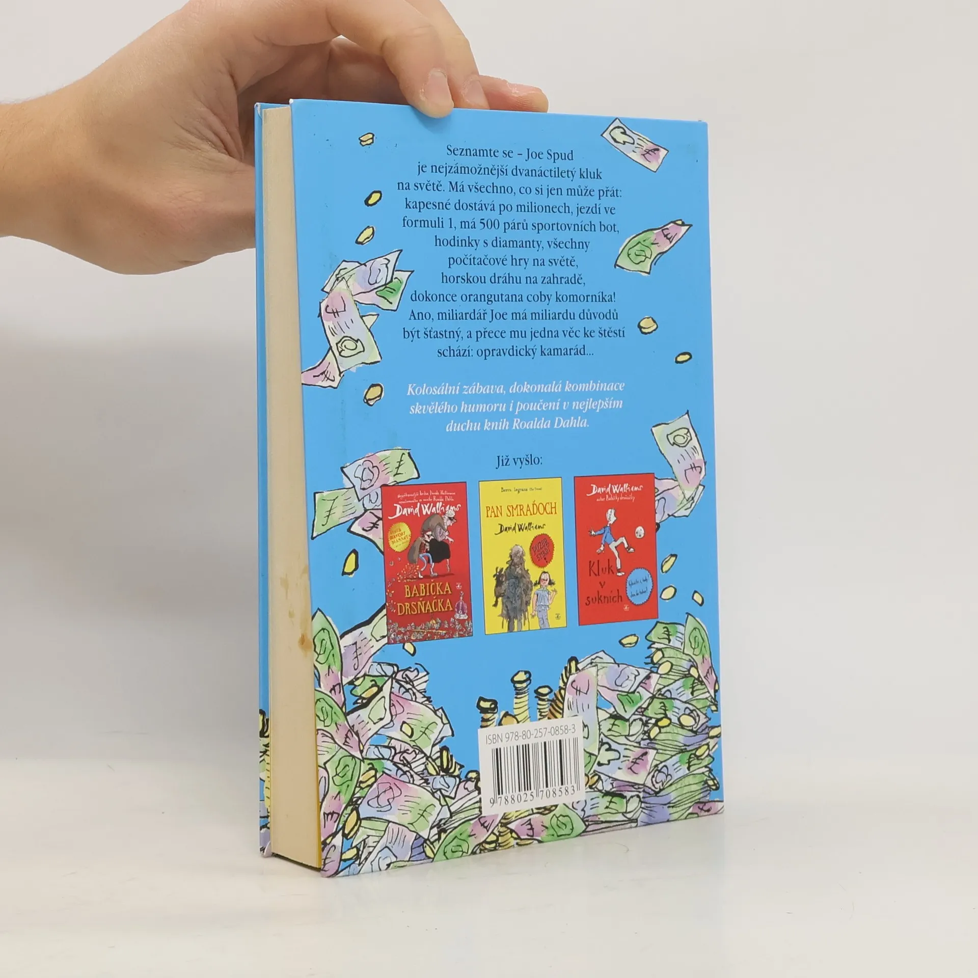 Joe je boháč, přesně řečeno nejbohatší dvanáctiletý kluk v celé Británii. Má všechno, nač si vzpomene: vůz formule 1, kino, pět set párů sportovních bot, orangutana jako sluhu. A přece mu něco důležitého chybí: kamarád… Poprosí proto tátu, aby směl chodit (světe, div se!) do docela obyčejné školy, inkognito! Tím rozpoutá sérii bláznivých situací a neuvěřitelných trapasů, na jejímž konci Joe zjišťuje, že peníze a bohatství ke štěstí nestačí. David Walliams vypráví o věcech, které jsou k pláči, tak brilantně a s takovou dávkou skvělého humoru, že budete plakat smíchy. Právem je kritiky označován za nového Roalda Dahla.