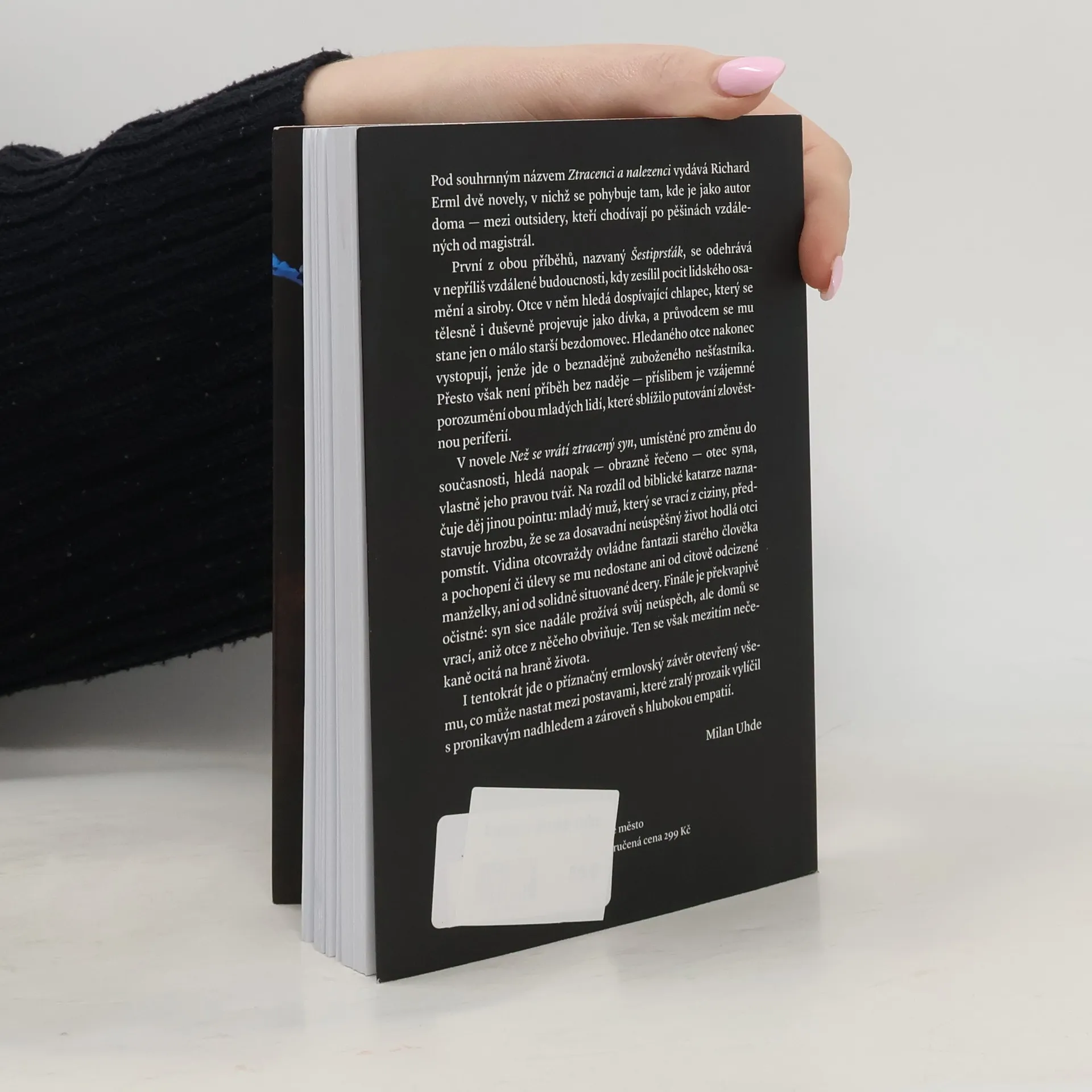 Kniha nabízí dvě novely, v nichž se autor pohybuje tam, kde je jako doma — mezi outsidery.Šestiprsťák se odehrává v nedaleké budoucnosti plné lidského osamění a siroby. Otce v něm hledá dospívající chlapec, který se tělesně i duševně projevuje jako dívka, a průvodcem se mu stane jen o málo starší bezdomovec. Otce nakonec vystopují, jenže jde o beznadějně zuboženého nešťastníka. Přesto není příběh bez naděje — příslibem je porozumění obou mladých lidí, které sblížilo putování zlověstnou periferií.V novele Než se vrátí ztracený syn hledá naopak otec syna, vlastně jeho pravou tvář. Na rozdíl od biblické katarze naznačuje děj jinou pointu: mladý muž, který se vrací z ciziny, představuje hrozbu, že se za neúspěšný život hodlá otci pomstít. Vidina otcovraždy ovládne fantazii starého člověka. Finále zdá se překvapivě očistné: syn sice nadále prožívá svůj neúspěch, ale domů se vrací, aniž otce z něčeho obviňuje. Ten se však mezitím ocitá na hraně života. I tentokrát jde o příznačný ermlovský závěr otevřený všemu, co může nastat mezi postavami, které zralý prozaik vylíčil s pronikavým nadhledem i hlubokou empatií.-- Milan Uhde