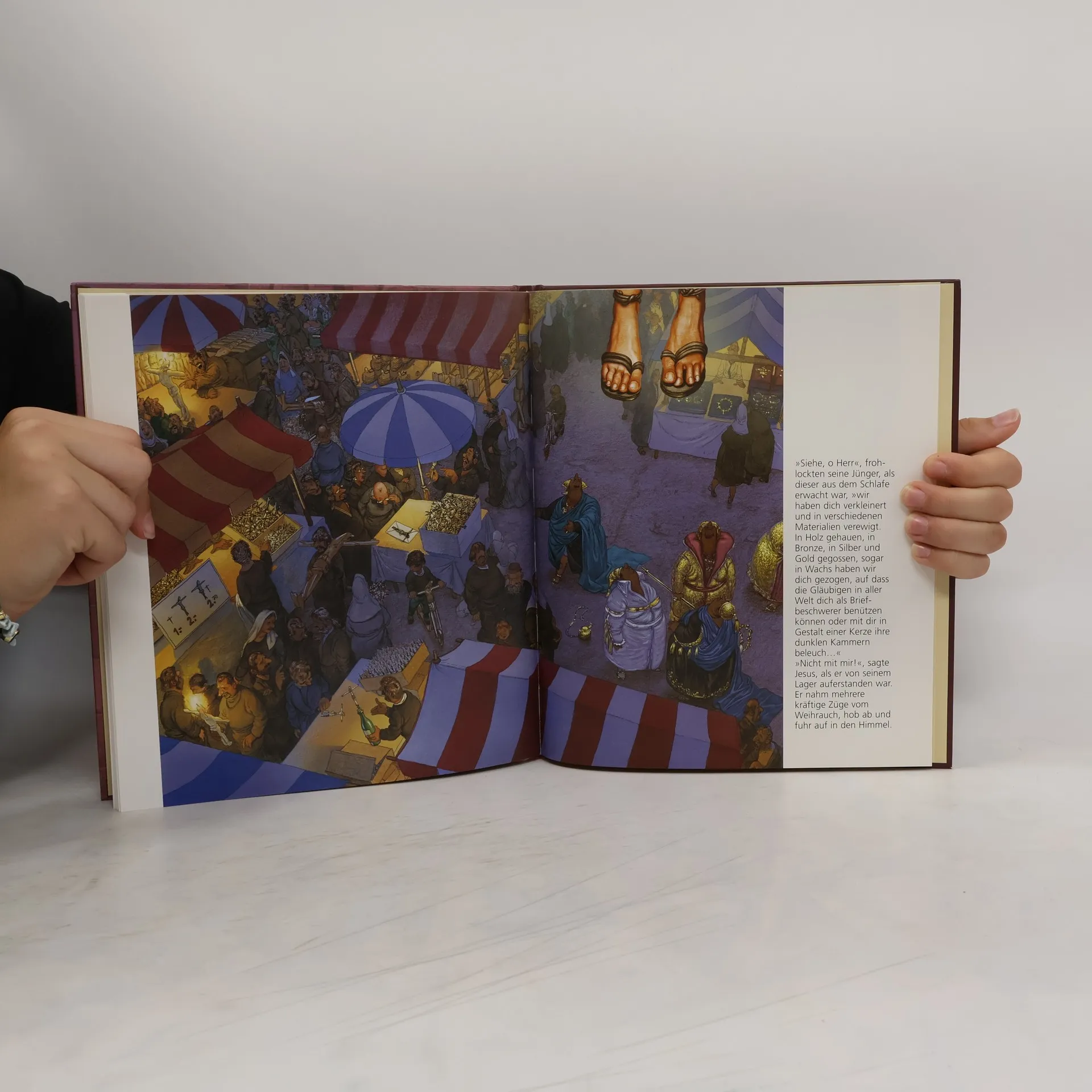 Vor dem katholischen Osterfest veröffentlicht der Karikaturist Gerhard Haderer ein provokantes Bilderbuch über das Leben Jesu, das auf jahrelangen Recherchen und Studien basiert. Haderer dokumentiert das Leben Jesu und seiner Jünger aus einer eigenwilligen Perspektive, die viele katholische Eiferer verstören könnte. Jesus wird als weihrauchsüchtiger, ungeschickter Jüngling dargestellt, dessen Wunderkräfte von seinen Jüngern ausgenutzt werden. Die ausdrucksstarke Bildsprache Haderers zeigt viele zeitgenössische Figuren und zielt darauf ab, nicht Jesus, sondern die Menschen zu kritisieren, die aus seinem Leben Kapital schlagen, insbesondere die Kirche als Institution. Auch Politiker, die sich dem christlichen Ideal verschrieben haben, werden in ihrer Heuchelei verewigt. Haderer hält der gewinnsüchtigen Gesellschaft einen Spiegel vor, der sowohl zum Lachen als auch zum Nachdenken anregt. Dieses Buch lädt dazu ein, es immer wieder zu durchblättern und regt zur Selbstreflexion an, indem es Kritik an der eigenen Wahrnehmung und den gesellschaftlichen Normen übt. Ein Werk für all jene, die bereit sind, sich mit diesen Themen auseinanderzusetzen.