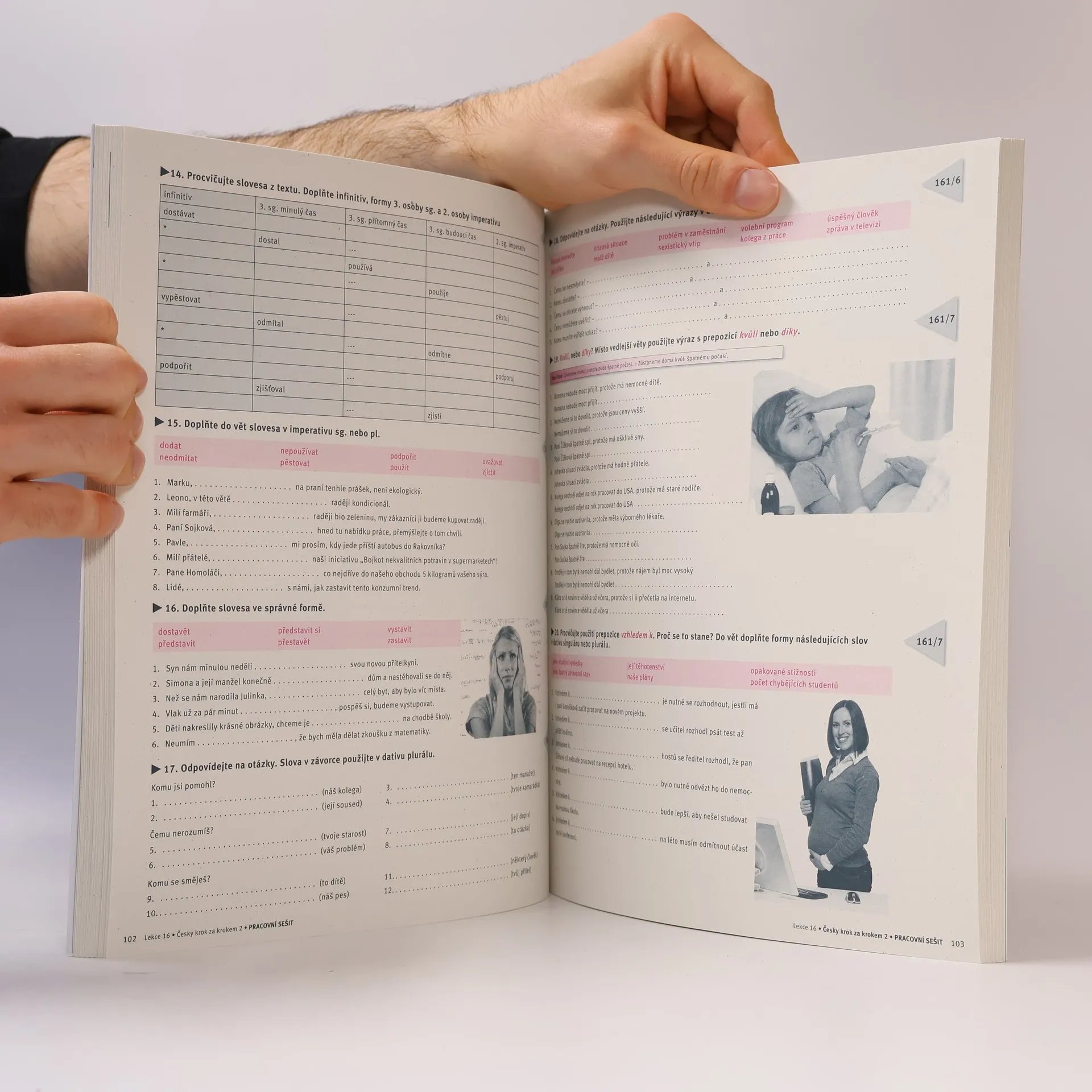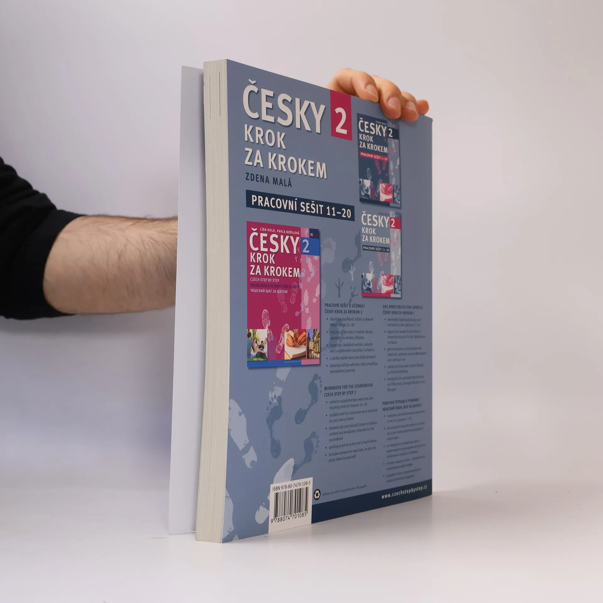 Druhý díl Pracovního sešitu autorky Zdeny Malé k učebnici Česky krok za krokem 2 (Lída Holá, Pavla Bořilová) přináší doplňková cvičení k lekcím 11–20. Ke každé lekci nabízí množství aktivit na procvičení probíraných komunikačních dovedností, slovní zásoby a gramatiky. Struktura publikace je podobná jako v prvním díle. Pro lepší orientaci opět slouží značky vedle cvičení s označením strany a cvičení v učebnici, ke kterému patří. Znaménkem plus jsou označena náročnější cvičení, která přesahují úroveň B1. Ta jsou určena k alternativnímu použití především pro studenty s mateřským slovanským jazykem nebo pro motivované studenty. Všechna zadání jsou pouze v češtině. K většině cvičení je řešení v klíči na konci publikace. Cvičebnice je tedy vhodná jak k práci v hodině, tak k samostudiu. Publikace také nabízí množství textů s úkoly, které připravují studenty na zvládnutí části čtení s porozuměním u Certifikované zkoušky z češtiny na úrovni B1 nebo u Zkoušky pro udělení občanství. Na konci každé lekce je opět stránka věnovaná pravopisu, v tomto díle především psaní i a y ve vyjmenovaných slovech. – Dvoubarevné fotografie a ilustrace.