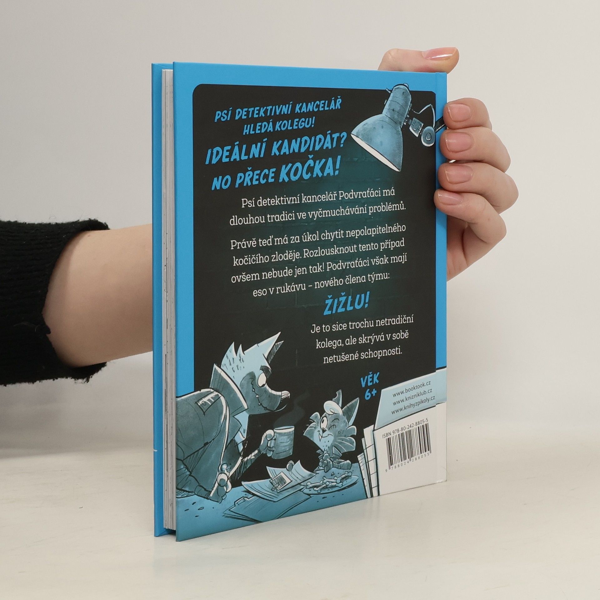 Psí detektivní kancelář hledá kolegu! Zn. Ideální kandidát? No přece kočka! Psí detektivní kancelář Podvraťáci má dlouhou tradici ve vyčmuchávání problémů. Právě teď má za úkol chytit nepolapitelného kočičího zloděje. Rozlousknout tento případ ovšem nebude jen tak. Podvraťáci však mají eso v rukávu – nového člena týmu. Je to sice trochu netradiční kolega, ale skrývá v sobě netušené schopnosti.