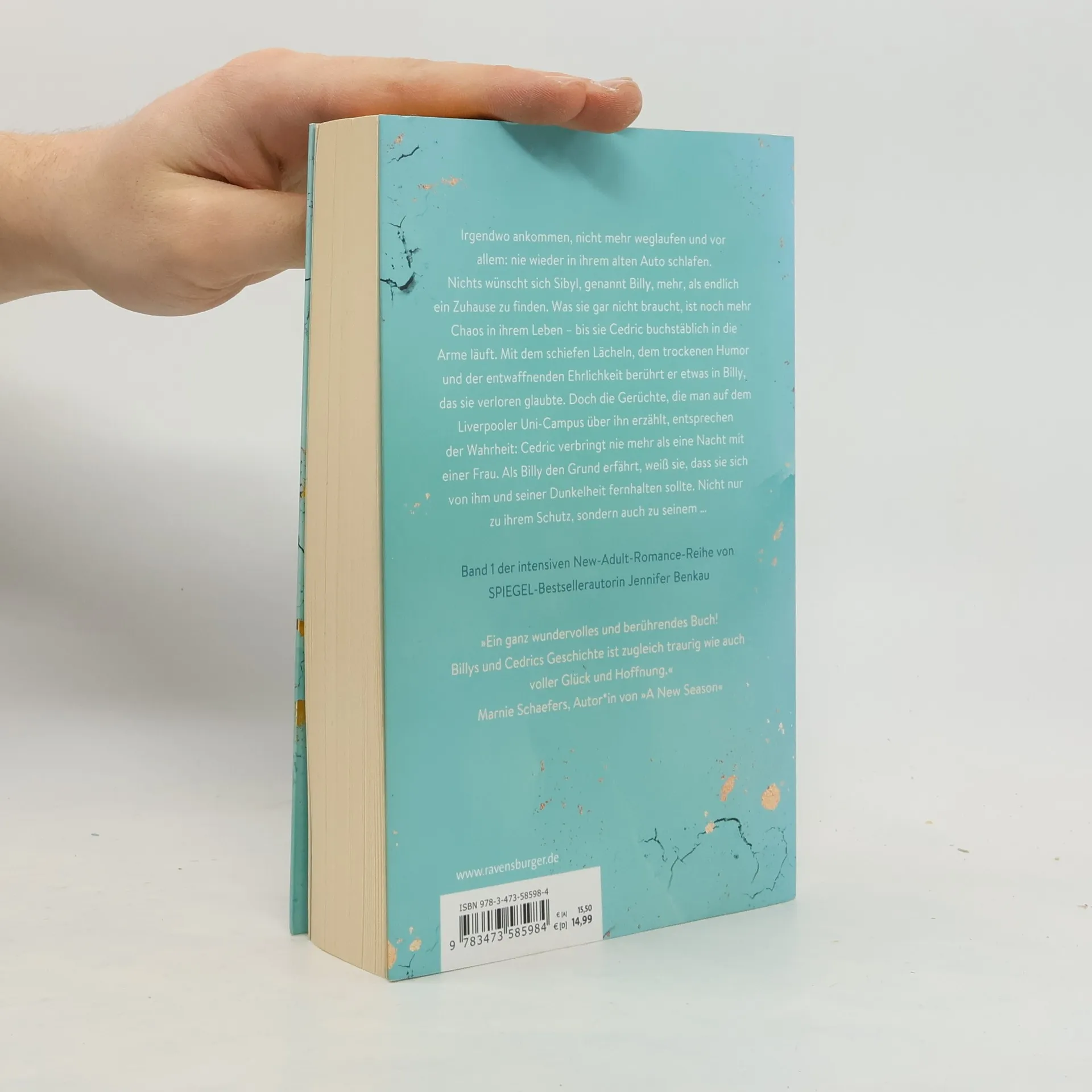 Nichts wünscht sich Billy mehr, als endlich ein Zuhause zu finden. Was sie gar nicht braucht, ist noch mehr Chaos in ihrem Leben – bis sie Cedric buchstäblich in die Arme läuft. Mit dem schiefen Lächeln und der entwaffnenden Ehrlichkeit berührt er etwas in Billy. Doch die Gerüchte, die man über ihn erzählt, entsprechen der Wahrheit: Cedric verbringt nie mehr als eine Nacht mit einer Frau. Als Billy den Grund erfährt, weiß sie, dass sie sich von ihm und seiner Dunkelheit fernhalten sollte … Band 1 der intensiven New-Adult-Romance-Reihe von SPIEGEL-Bestsellerautorin Jennifer Benkau „Ein ganz wundervolles und berührendes Buch! Billys und Cedrics Geschichte ist zugleich traurig wie auch voller Glück und Hoffnung.“ Marnie Schaefers, Autor*in von „A New Season” Die komplette New-Adult-Reihe (die Bände können unabhängig voneinander gelesen werden): A Reason To Stay (Liverpool-Reihe 1) A Reason To Hope (Liverpool-Reihe 2)