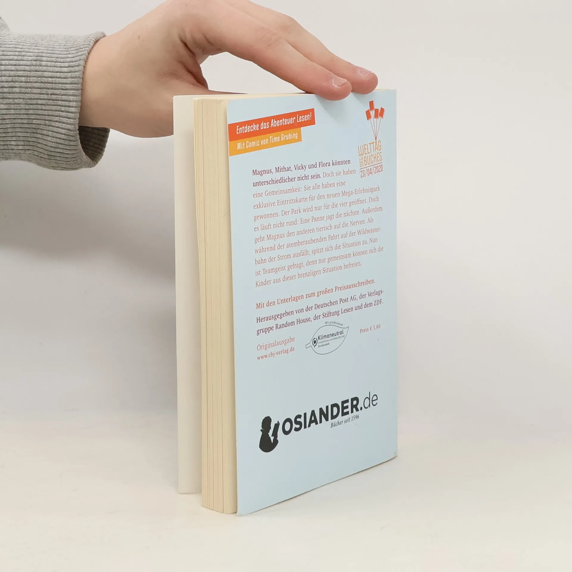 Ein Freizeitpark, vier unterschiedliche Kinder und ein großes Abenteuer, das sie nur gemeinsam bestehen können! Magnus, Mithat, Vicky und Flora könnten unterschiedlicher nicht sein. Doch sie alle haben eine Gemeinsamkeit: Sie haben das große Los gezogen und in einem Preisausschreiben eine exklusive Eintrittskarte für den neuen Mega-Erlebnispark gewonnen. Der Park ist am Premierentag nur für die vier geöffnet. Doch es läuft nicht rund: Eine Panne jagt die nächste. Außerdem geht Magnus den anderen mit seinem obercoolen Gehabe tierisch auf die Nerven. Als dann während der atemberaubenden Fahrt auf der Wildwasserbahn auch noch der Strom ausfällt, spitzt sich die Situation zu. Nun ist Teamgeist gefragt, denn nur gemeinsam können sich die Kinder aus dieser brenzligen Situation befreien. Ausstattung: Mit s/w Illustrationen und Comic