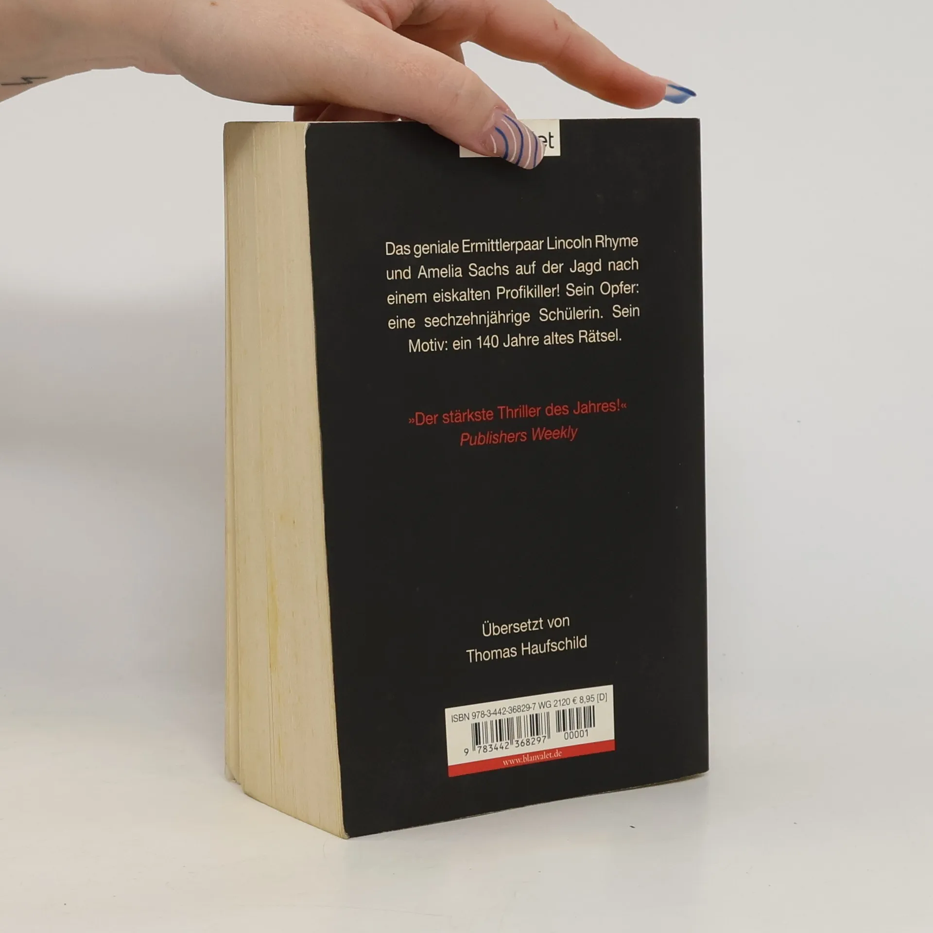 Der 6. Fall für Lincoln Rhyme und Amelia Sachs.Die packende Bestseller-Reihe jetzt als TV-Serie bei SAT1! Frühmorgens in einer New Yorker Bibliothek: Beinahe zu spät bemerkt die sechzehnjährige Geneva Settle den unheimlichen Fremden – in den Augen des Mannes steht die nackte Mordlust! Nur mit einem Trick kann die Schülerin aus Harlem ihrem Angreifer entkommen … Die Spuren, die Lincoln Rhyme und Amelia Sachs am Tatort entdecken, deuten zunächst auf eine versuchte Vergewaltigung hin. Doch Rhyme ist überzeugt: Das junge Mädchen ist in das Visier eines gerissenen Profikillers geraten – dessen Motive möglicherweise 140 Jahre alt sind. Und tatsächlich geht das Teufelsspiel schon bald in seine zweite, tödliche Runde …