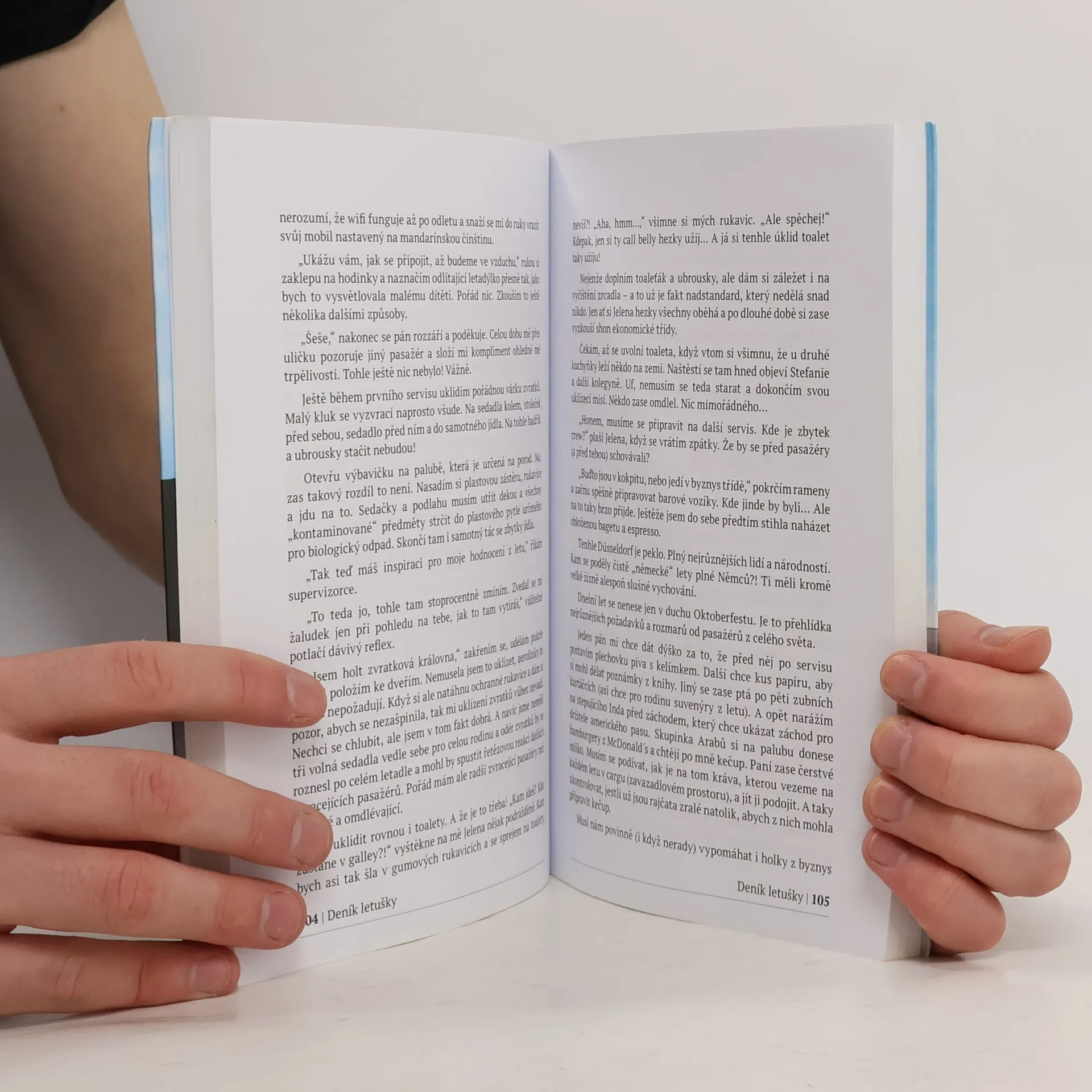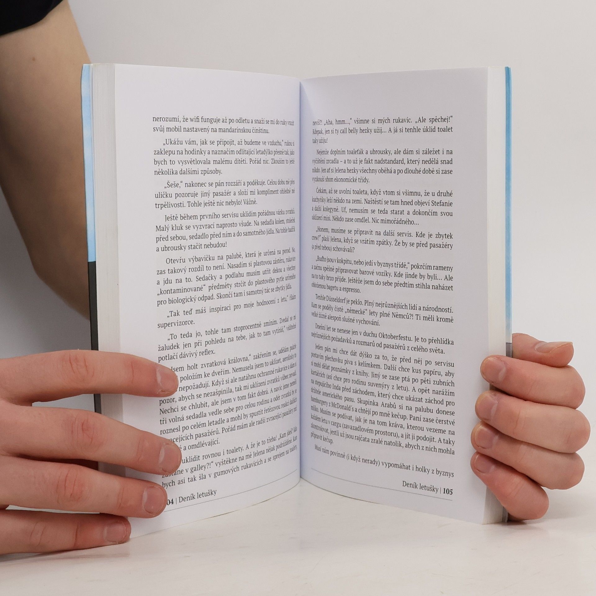 Tahle kniha není jen o vtipných historkách z paluby a ze života dubajské letušky. To, o co se s vámi chci podělit, ještě napsáno nikdy nebylo. Prozradím vám totiž, co letušky dělají, když se pasažéři nedívají. O čem mají zakázáno si na palubě povídat a jaké je probouzet se pokaždé v jiné posteli. O sexuálním harašení a poslušnosti. Povím vám o extrémních situacích, kdy jde o život, a o tom, jaké je pracovat v atmosféře strachu pro jedny z největších aerolinek na světě. Dám vám tipy, jak uspět u pohovoru. Dozvíte se, co je na tréninku na dubajskou letušku zábavné a co je naopak noční můra. Jaké je pracovat s nejrůznějšími národnostmi a kteří jsou ti nejhorší pasažéři. Od cestování do těch nejlepších destinací až po psychické obtíže, chuť to vzdát a to, jak se létá v době covidu.