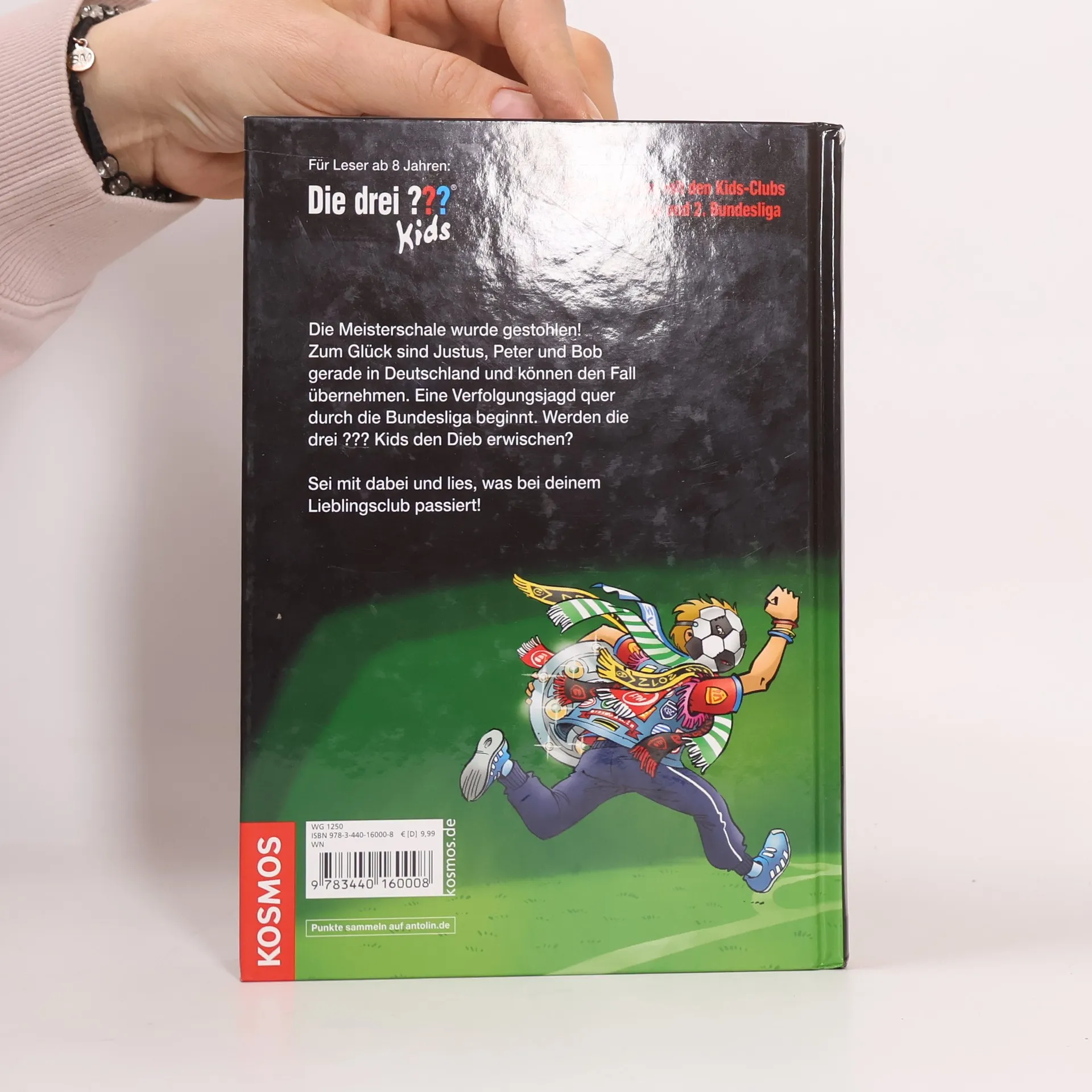 Justus, Peter und Bob machen gemeinsam mit Tante Mathilda und Onkel Titus eine Deutschlandreise. Dabei geraten sie mitten in einen Fall, der sie zu 27 Vereinen der Bundesliga fü Die Meisterschale wurde gestohlen! Glücklicherweise sind Justus, Peter und Bob gerade vor Ort und können den Fall übernehmen. Der wahnsinnige Dieb jagt die drei ??? Kids quer durch die Bundesliga, vom Hamburger SV bis zum FC Bayern, von Eintracht Braunschweig bis zum VfB Stuttgart. In insgesamt 27 Fußballclubs müssen die Kult-Detektive vor Ort ermitteln. Werden sie den dreisten Dieb erwischen?Bundesliga club logos and DFL logos are protected trademarks of the respective clubs/organisations and are used with the kind permission of the respective owners. Manufactured under license from the DFL/Ligaverband in sole responsibility of Franckh-Kosmos Verlags-GmbH & Co. KG