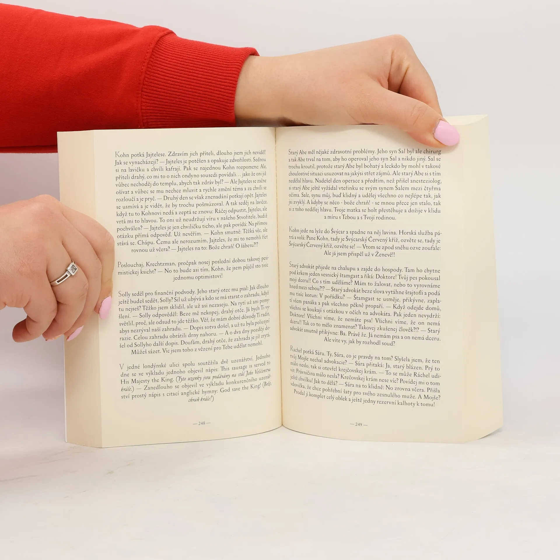 Doktor Štein měl kdysi neodbytného pacienta Schneidera, který byl na kordy s plotýnkou. Doktor Štein je naučil spolu vycházet, ale pak si sám přerazil páteř a týdny ležel nehybně. Vděčný pacient, a ten je někdy horší než boží dopuštění, začal posílat doktoru Šteinovi každé pondělní ráno příděl vtipů, aby mu bránice trochu namasírovala pajšl. Nejprve poslal Schneider jeden vtip, ten o Goliášovi, pak víc a víc, až se to ustálilo na sedmi, jak jinak. I počet adresátů vzrostl na pětistovku. Někteří z nich se prý dokonce začali těšit v pondělí do práce. některé vtipy byly zaručené, jiné nové a neznámé, do češtiny přeložené poprvé. Schneider je posílal dlouhých a tučných sedm let, pondělí co pondělí bez přerušení, celých 365 pondělků v řadě.