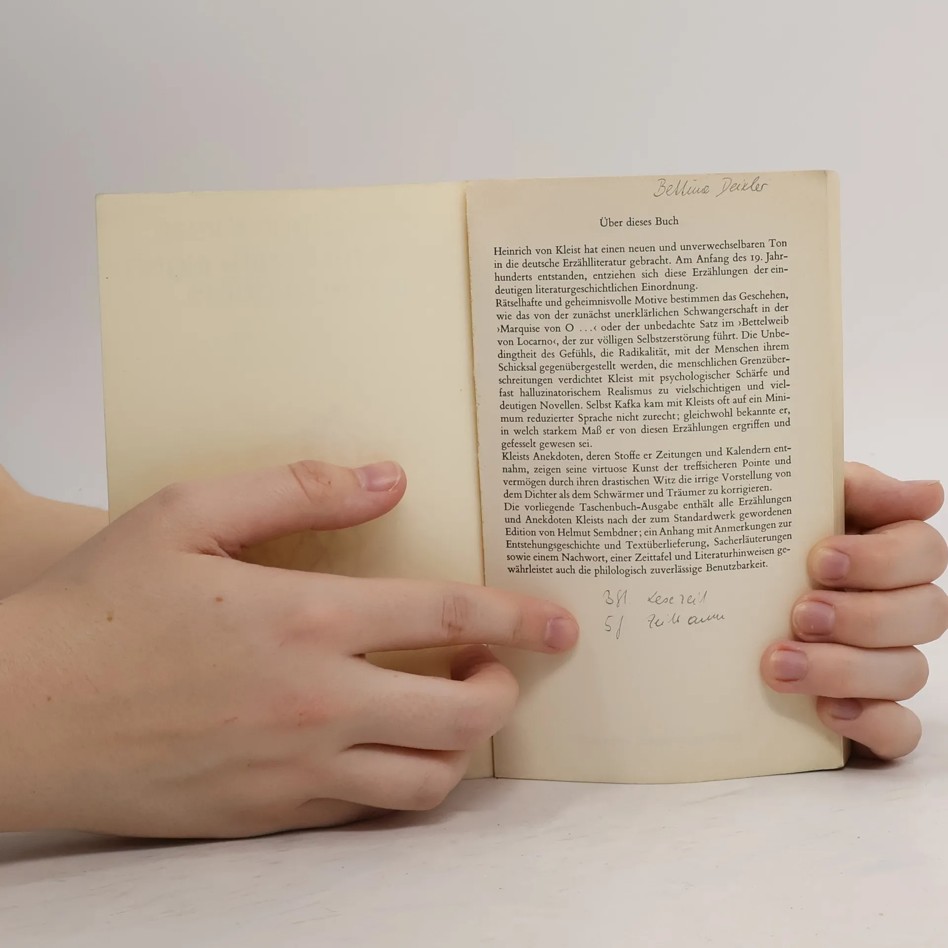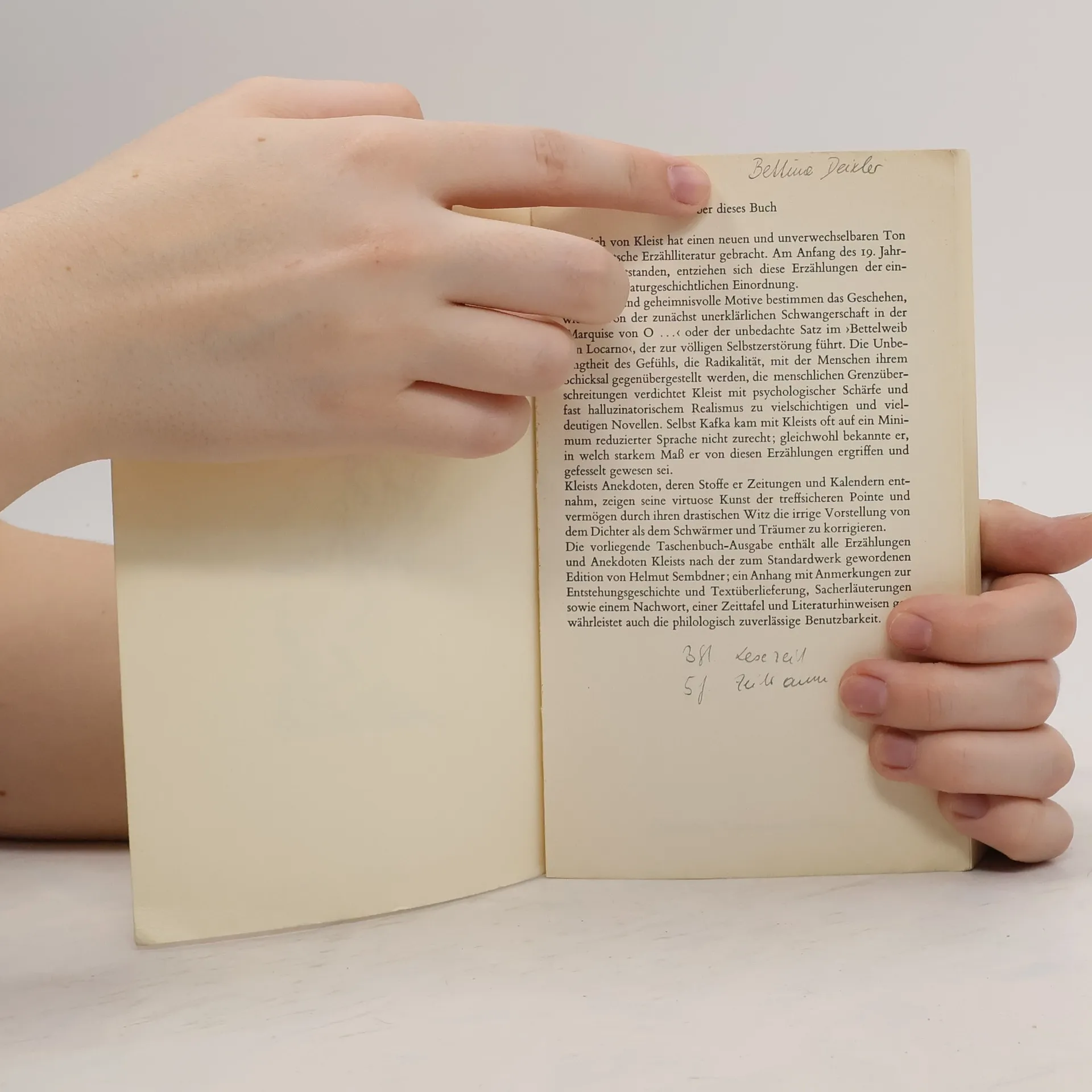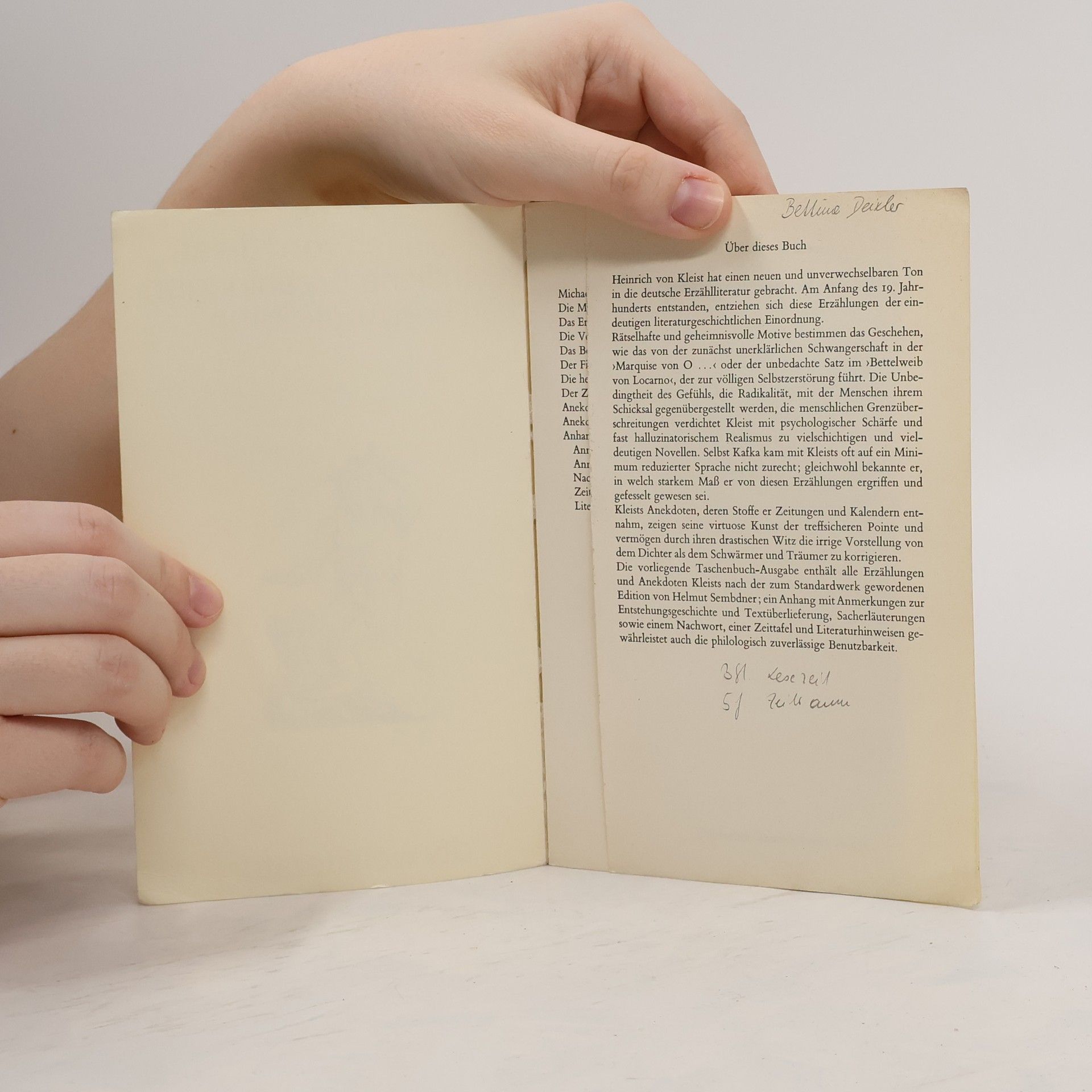 Klappentext: \"Wie viele Erzählungen besitzen wir Deutsche, deren Verfasser beliebt und belohnt wurden; aber wo sind diejenigen, die man höher als die Kleistschen stellen dürfte, welch kein Mensch kennt und würdigt?\"