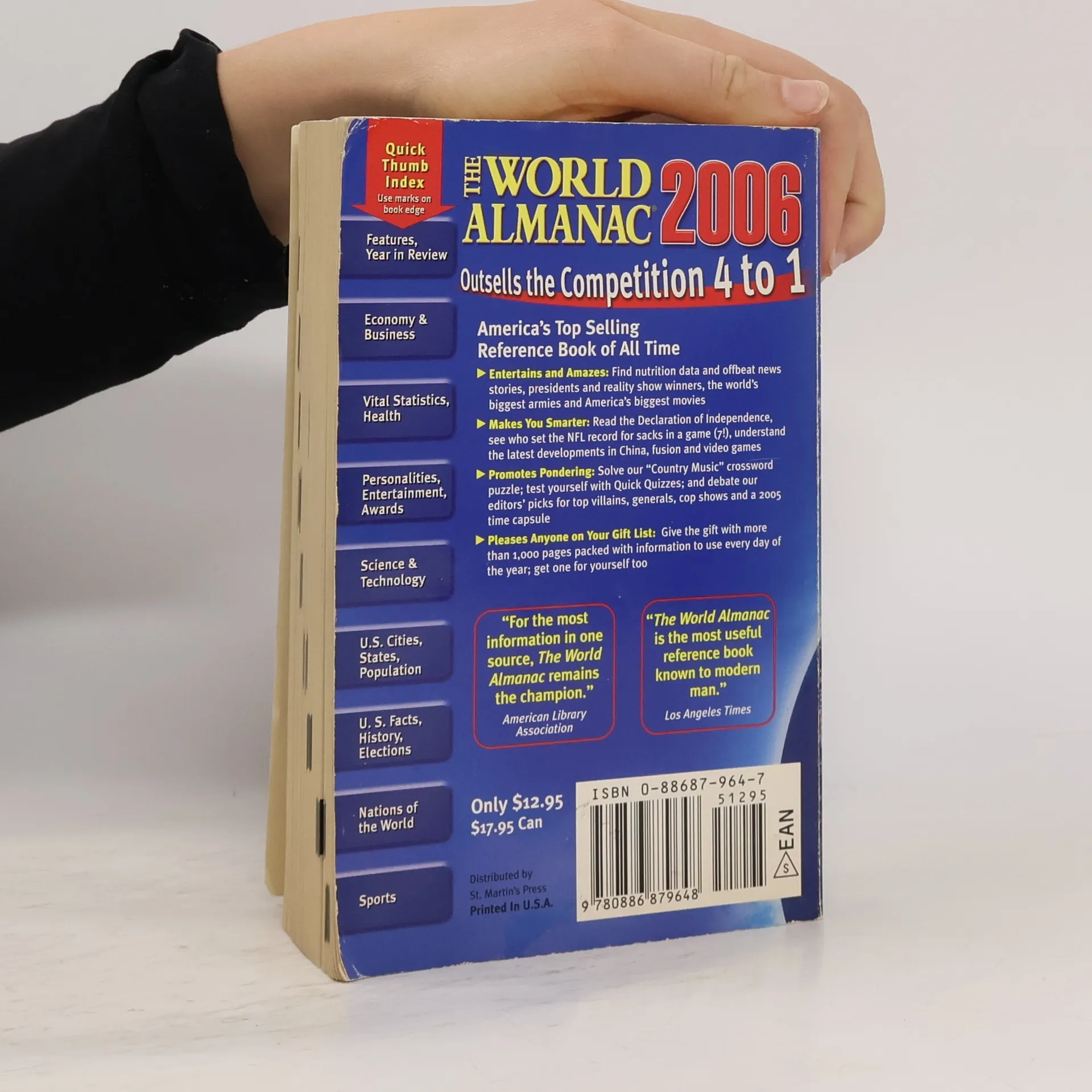 All new for 2006! For information that’s entertaining, accurate, accessible, useful, and – most of all – reliable, The World Almanac can’t be beat. Completely revised and updated from the first page to the last, The World Almanac 2006 provides over 1,000 pages of facts and figures (including 32 pages in color). New features A major feature story on ChinaA new section on the year’s health newsA review of the Tsunami tragedyA second annual crossword puzzleUp-to-date maps and geography informationWith the answers to everyday questions, the World Almanac makes everyone smarter!