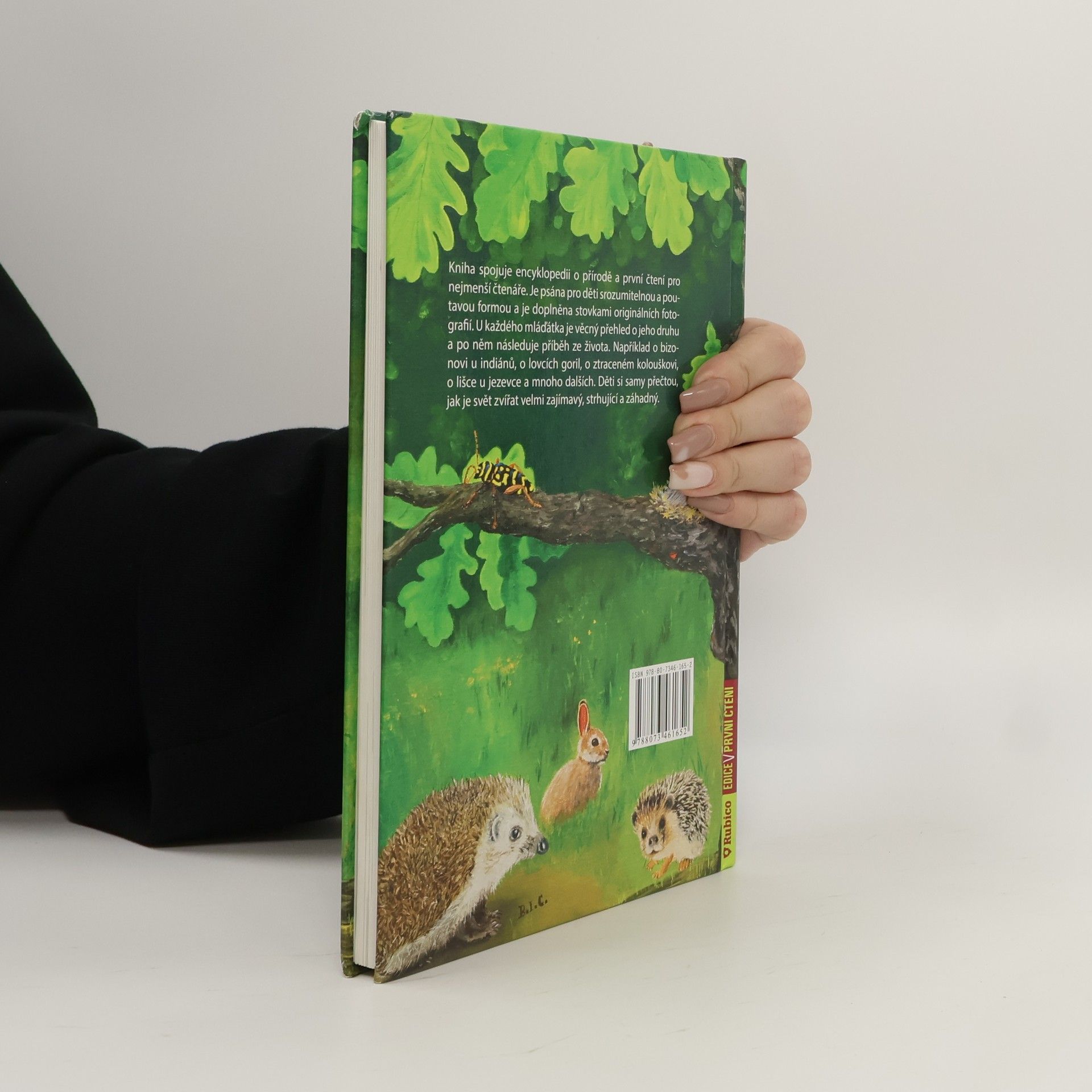 Kniha spojuje encyklopedii o přírodě a první čtení pro nejmenší čtenáře. Je psána pro děti srozumitelnou a poutavou formou a je doplněna stovkami originálních fotografií. U každého mláďátka je věcný přehled o jeho druhu a po něm následuje příběh ze života. Například o bizonovi u indiánů, o lovcích goril, o ztraceném kolouškovi, o lišce u jezevce a mnoho dalších. Děti si samy přečtou, jak je svět zvířat velmi zajímavý, strhující a záhadný.
