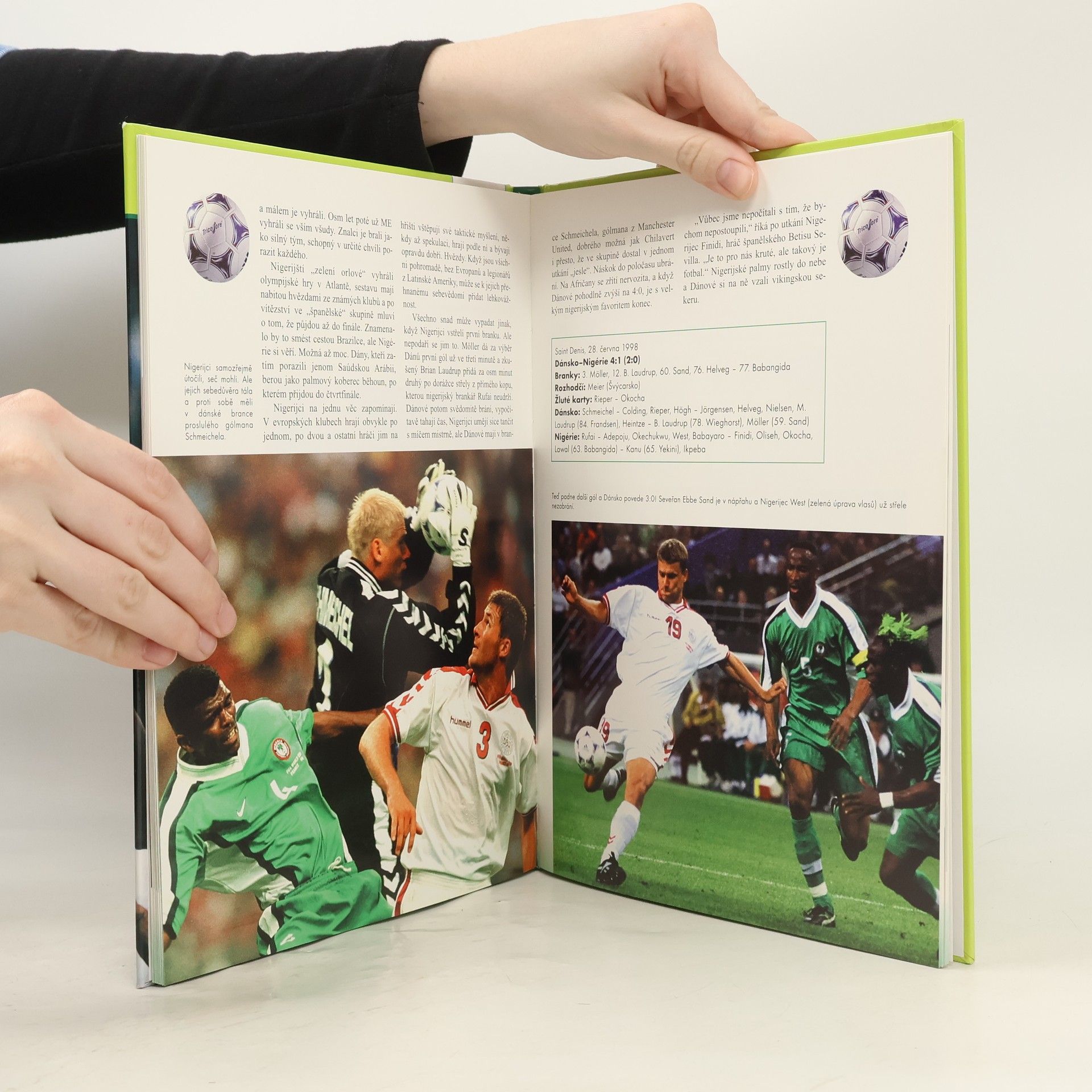 "Byl to největší turnaj v dějinách fotbalu. Nejvíc mužstev, nejvíc zápasů a třiatřicet dnů od začátku do konce. Na vlastní půdě se mistrem světa stala Francie. Byl to největší a současně i nejlepší šampionát v historii? Takovou otázku nikdo přesně nezodpoví. Ale pravda je, že mistrovství se ve Francii často měnilo v drama." Průběh mistrovství i galerie jedenácti největších fotbalových hvězd; text provází množství barevných fotografií.