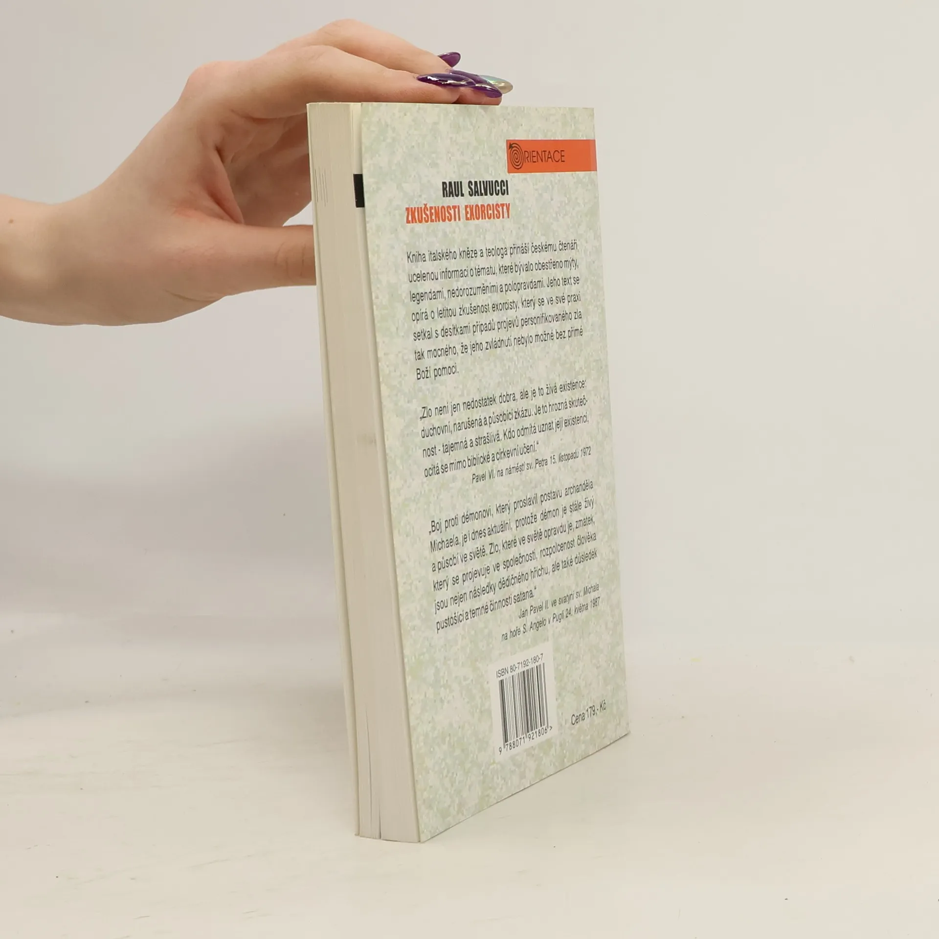 Slyšíme-li slovo exorcismus, vyvolává v nás zvláštní směsici zvědavosti a strachu nebo si vybavujeme útržkovitě informace z filmů. Kniha italského kněze, teologa, ale také exorcisty s více než dvacetiletou praxí, je první ucelenou informací tohoto druhu na našem knižním trhu. Věcným a zároveň poutavým způsobem provádí čtenáře nejen dějinami vztahu personifikovaného zla k člověku, ale především popisuje současnou situaci v církvi i ve světě.
