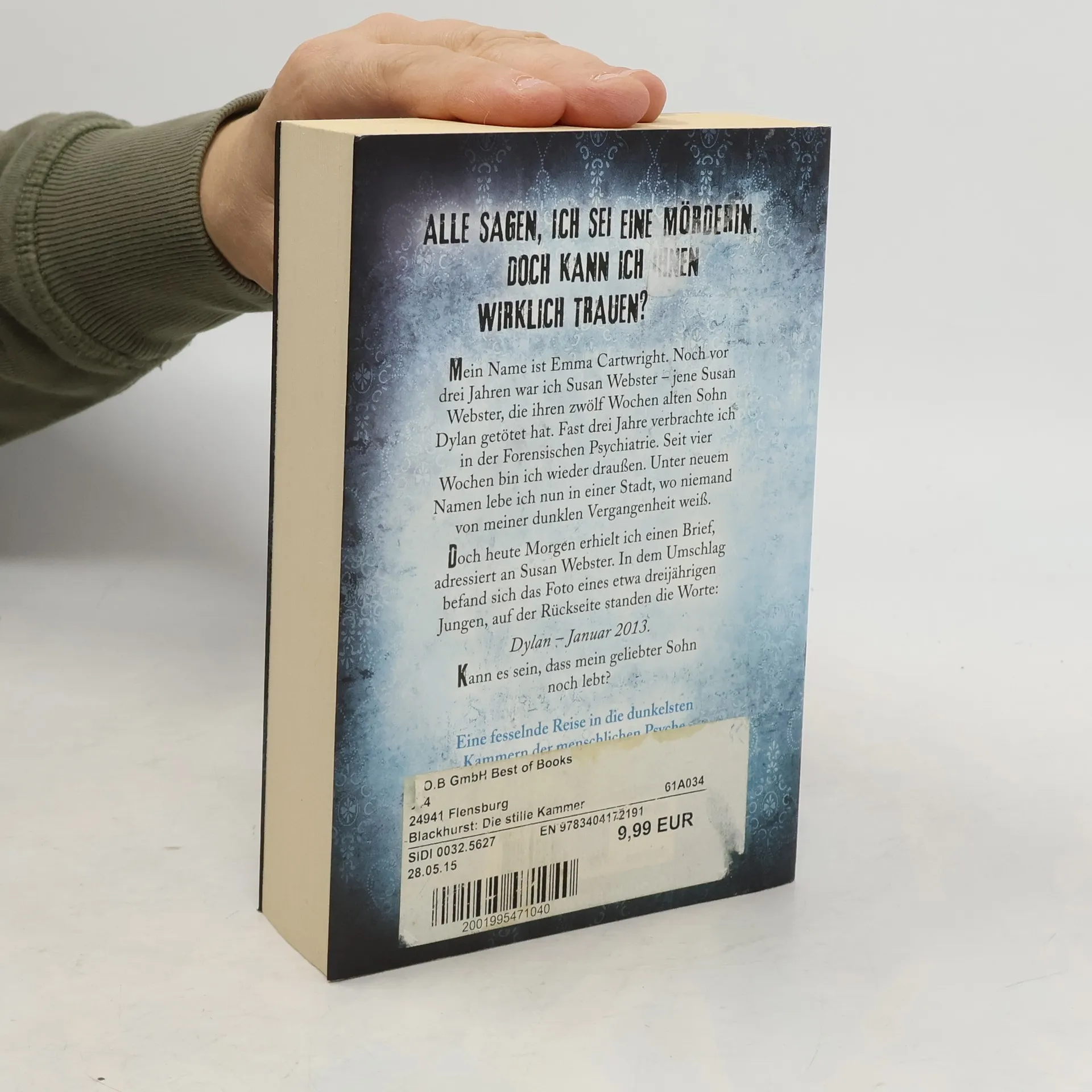 Mein Name ist Emma Cartwright. Noch vor drei Jahren war ich Susan Webster - jene Susan Webster, die ihren zwölf Wochen alten Sohn Dylan getötet hat. Fast drei Jahre verbrachte ich in der Forensischen Psychiatrie. Seit vier Wochen bin ich wieder draußen. Unter neuem Namen lebe ich nun in einer Stadt, wo niemand von meiner dunklen Vergangenheit weiß. Doch heute Morgen erhielt ich einen Brief, adressiert an Susan Webster. In dem Umschlag befand sich das Foto eines etwa dreijährigen Jungen, auf der Rückseite standen die Worte: Dylan - Januar 2013. Kann es sein, dass mein geliebter Sohn noch lebt?