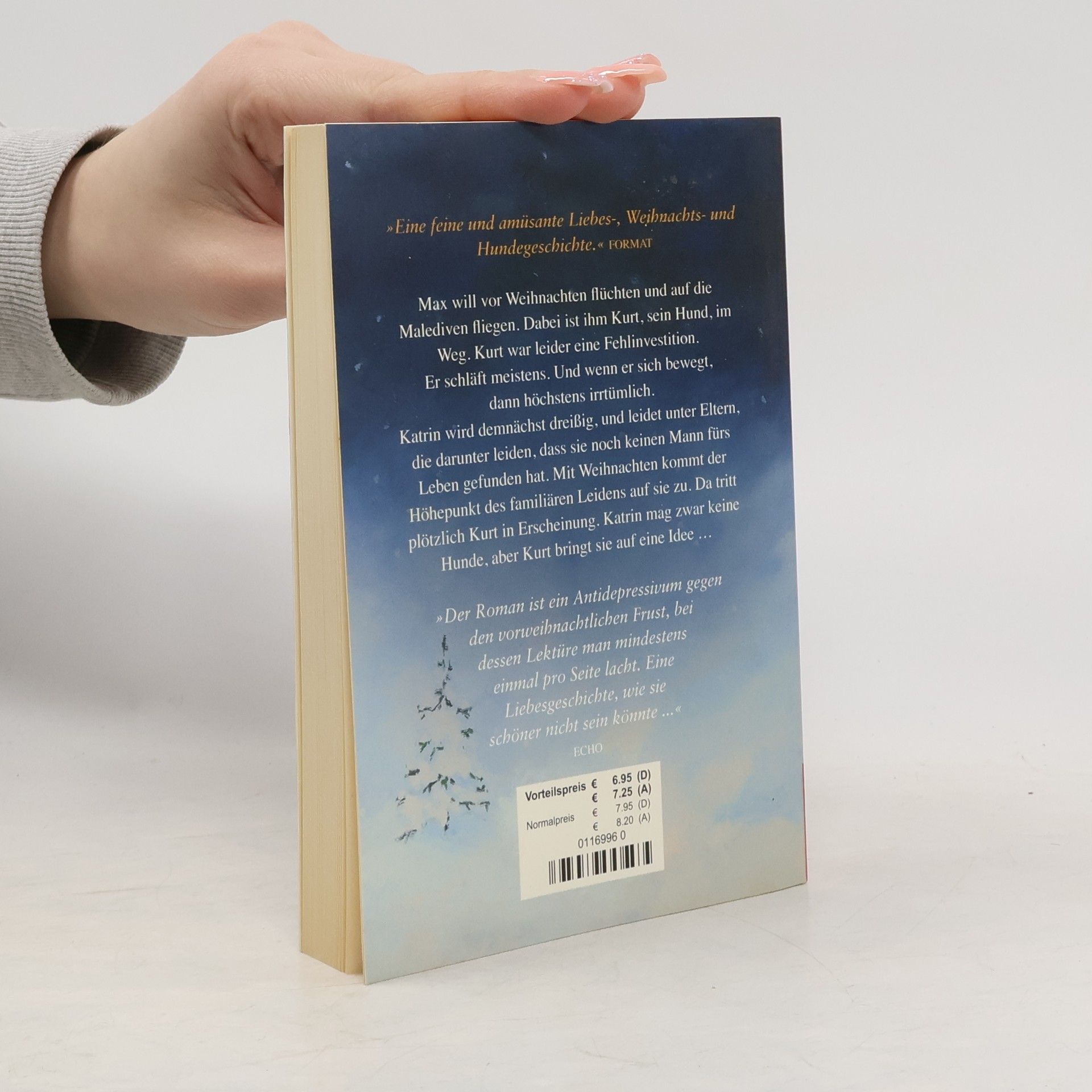 Eine Liebesgeschichte, wie sie schöner nicht sein könnte Max will vor Weihnachten flüchten und auf die Malediven fliegen. Dabei ist ihm Kurt, sein Hund, im Weg. Kurt war leider eine Fehlinvestition. Er schläft meistens. Und wenn er sich bewegt, dann höchstens irrtümlich. Katrin wird demnächst dreißig und leidet unter Eltern, die darunter leiden, dass sie noch keinen Mann fürs Leben gefunden hat. Mit Weihnachten kommt der Höhepunkt des familiären Leidens auf sie zu. Da tritt plötzlich Kurt in Erscheinung. Katrin mag zwar keine Hunde, aber Kurt bringt sie auf eine Idee …