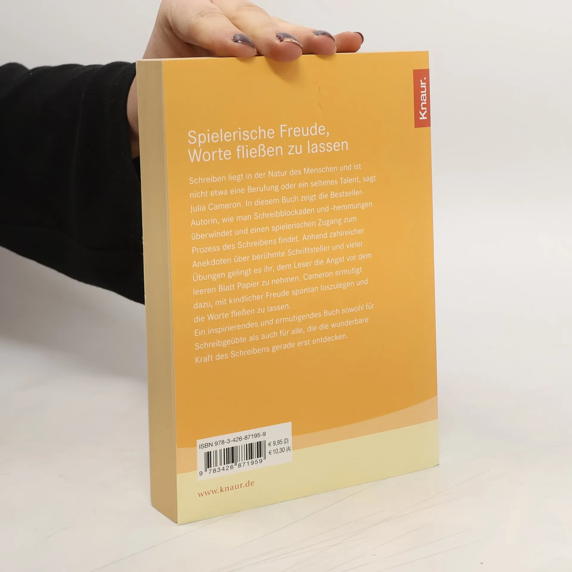 Schreiben liegt in der Natur des Menschen und ist nicht etwa eine Berufung oder ein seltenes Talent, sagt Julia Cameron. In ihrem neusten Buch zeigt die Bestsellerautorin, wie man Schreibblockaden und -hemmungen überwindet und einen spielerischen Zugang zum Akt des Schreibens findet. Anhand vieler Anekdoten über berühmte Schriftsteller und zahlreicher Übungen gelingt es ihr, dem Leser die Angst vor dem leeren Blatt Papier zu nehmen. Es kommt darauf an, mit kindlicher Freude spontan loszulegen und die Worte fließen zu lassen.