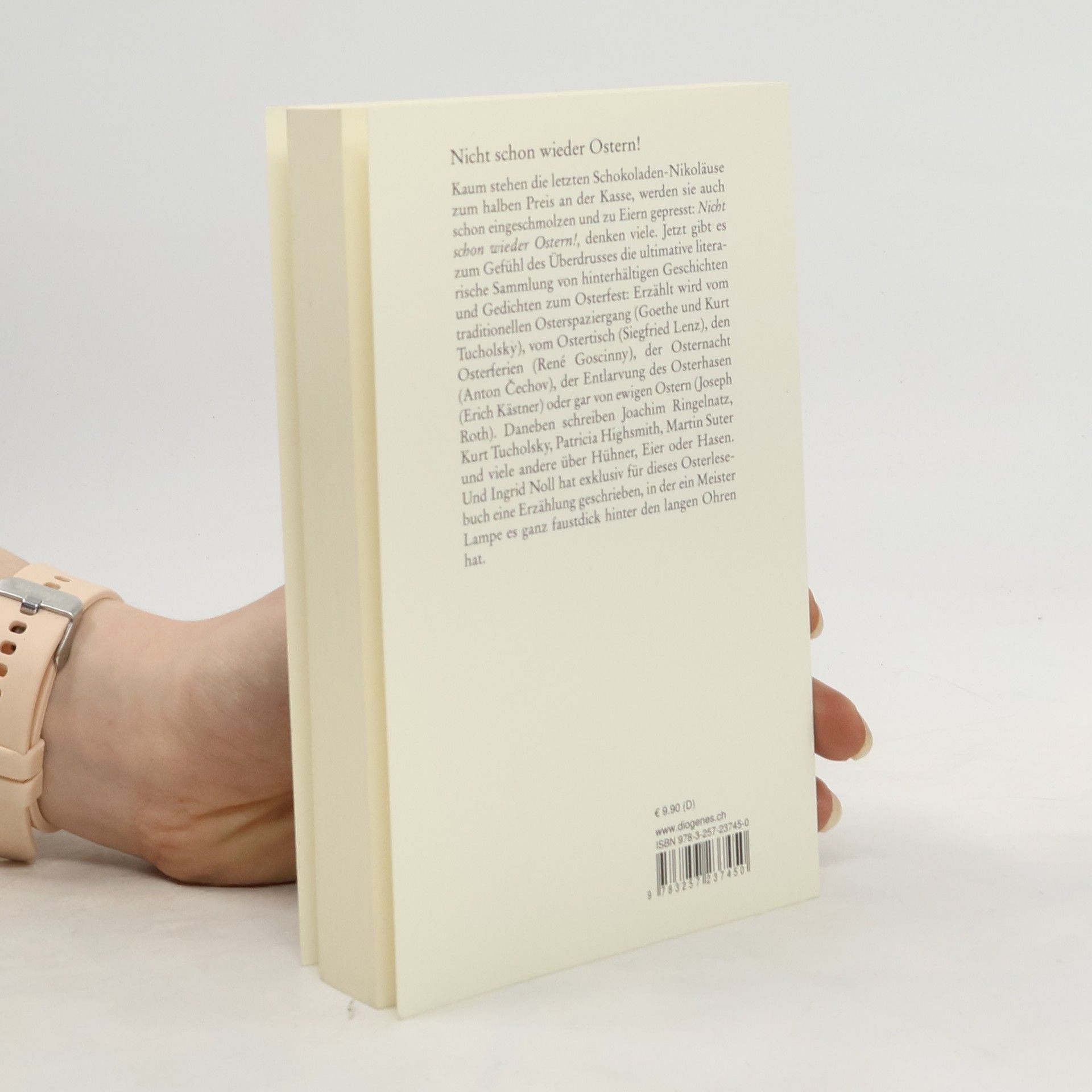 Vom traditionellen Osterspaziergang, vom Ostertisch, von den Osterferien, der Osternacht, der Entlarvung des Osterhasen und gar von ewigen Ostern erzählen Goethe, Kurt Tucholsky, Siegfried Lenz, René Goscinny, Anton Cechov, Erich Kästner, Joseph Roth, Joachim Ringelnatz, Patricia Highsmith, Martin Suter und viele andere. Und Ingrid Noll hat exklusiv für dieses Lesebuch eine Erzählung geschrieben, in der Meister Lampe es faustdick hinter den langen Ohren hat.