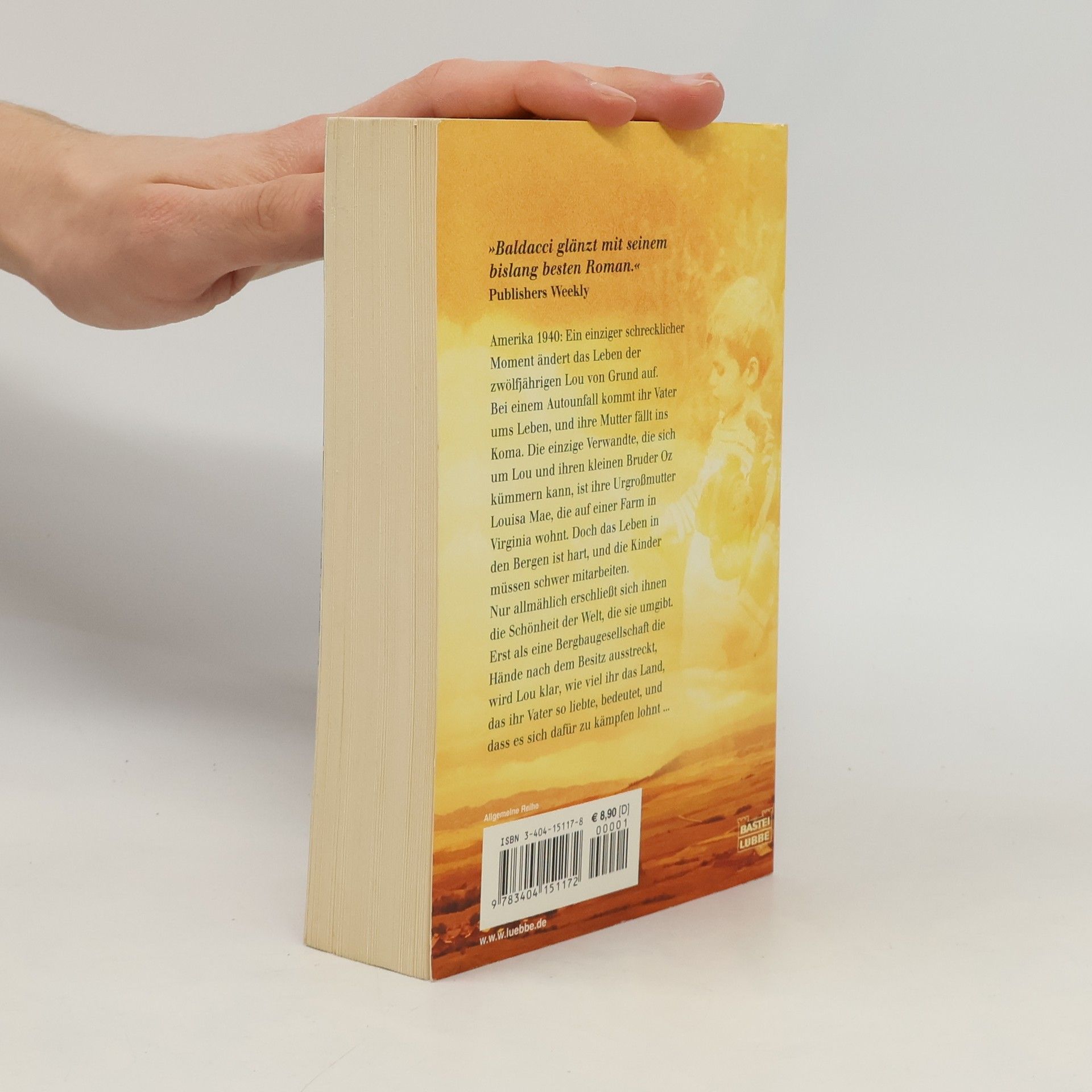 Ein Roman mit einem großen Herz und viel Gefühl Amerika 1940: Ein einziger schrecklicher Moment ändert das Leben der zwölfjährigen Lou von Grund auf. Bei einem Autounfall kommt ihr Vater ums Leben, und ihre Mutter fällt ins Koma. Die einzige Verwandte, die sich um Lou und ihren kleinen Bruder Oz kümmern kann, ist ihre Urgroßmutter Louisa Mae, die auf einer Farm in Virginia wohnt. Doch das Leben in den Bergen ist hart, und die Kinder müssen schwer mitarbeiten. Nur allmählich erschließt sich ihnen die Schönheit der Welt, die sie umgibt. Erst als eine Bergbaugesellschaft die Hände nach dem Besitz ausstreckt, wird Lou klar, wie viel ihr das Land, das ihr Vater so liebte, bedeutet, und dass es sich dafür zu kämpfen lohnt ... Mit „Das Versprechen“ hat Bestsellerautor David Baldacci einen fesselnden Roman geschrieben, der den Leser in das ländliche Amerika der 40er Jahre versetzt.