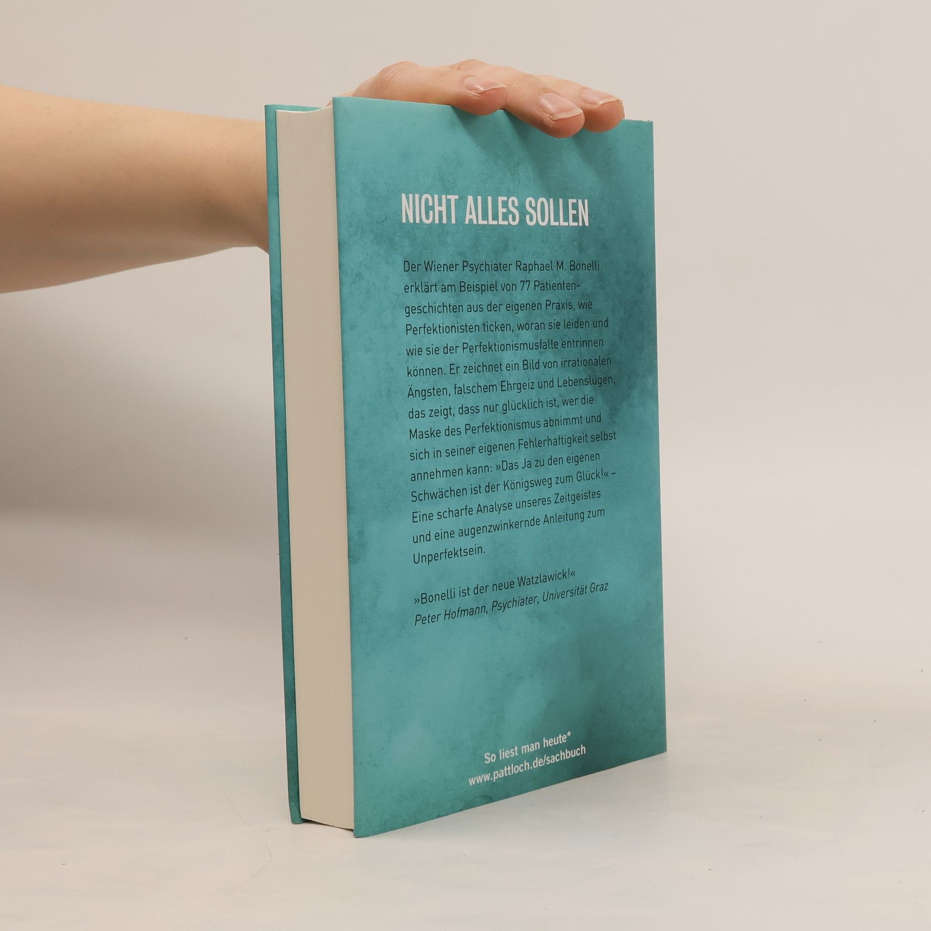»Ob in der Erziehung, der Ehe oder im Job – immer wollen wir alles richtig machen. Und dabei auch noch gut aussehen. Doch oft scheitern wir an den eigenen Ansprüchen.« Raphael Bonelli schildert in über 50 teils tragikomischen, teils erschütternden Patientengeschichten aus der eigenen Praxis, wie Perfektionisten ticken. Der Wiener Psychiater zeichnet ein Bild heutiger Seelennöte, von Ängsten, falschem Ehrgeiz und Lebenslügen, um aufzuzeigen, dass glücklich ist, wer sich in seiner ganzen Fehlerhaftigkeit, Durchschnittlichkeit und Gewöhnlichkeit selbst annehmen kann.