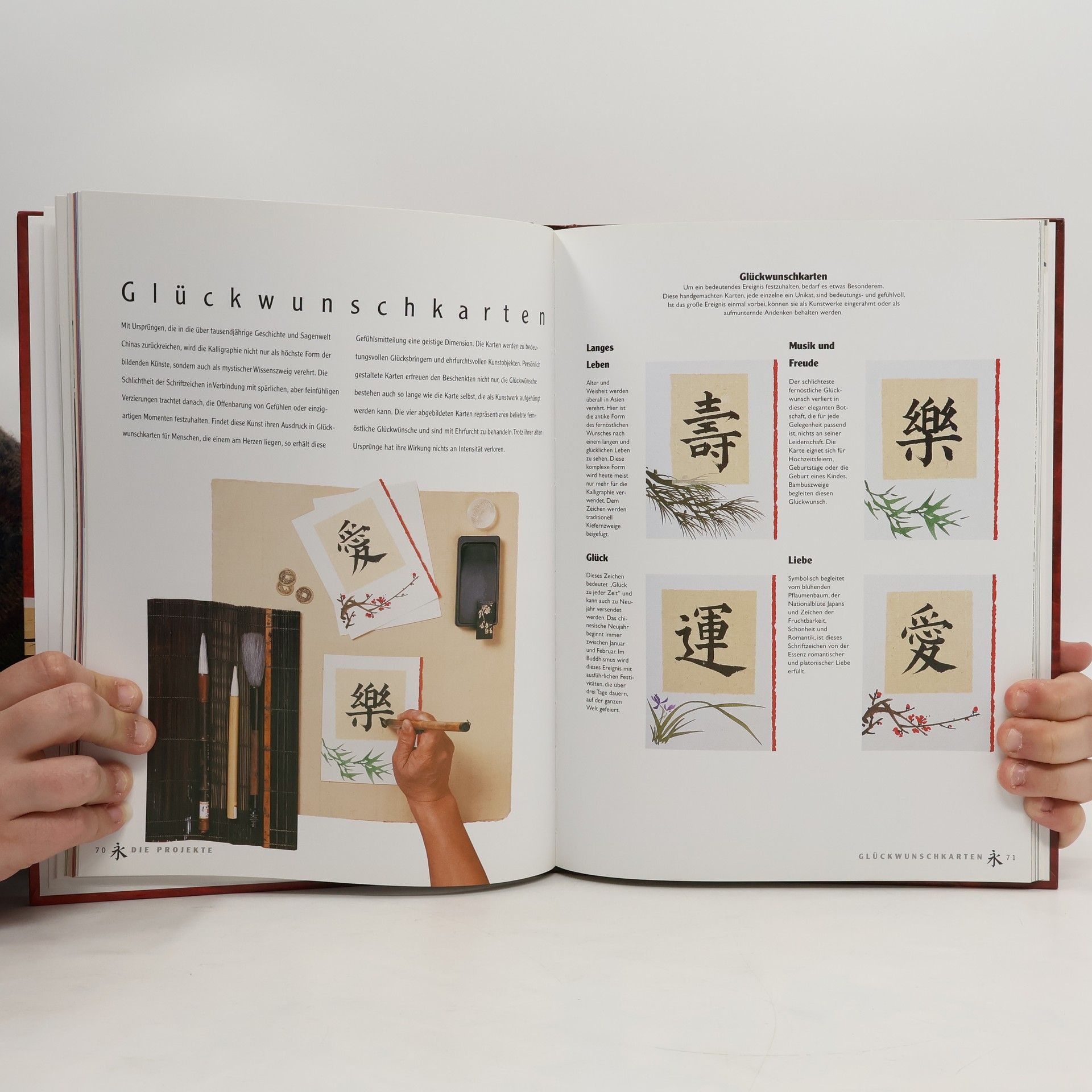 Die Kunst des schönen Schreibens Die chinesischen Schriftzeichen zählen zu den ältesten Symbolen der Welt. Seit 6000 Jahren hat sich ihre große Vielfalt entwickelt und damit die faszinierende Kunst der Kalligraphie. Nach einer umfassenden Einführung in die Geschichte der Schriftzeichen werden die Werkzeuge des Kalligraphen beschrieben. Anhand der Grundlagen der Technik erlernen Sie dann die Standard-Schreibschrift Kai Shu, mit der verschiedene Wörter und Namen schreiben können. Zahlreiche Projekte von Fächern über Glückwunschkarten bis zu Siegelsteinen und Scherenschnitten runden das Buch ab. - Detaillierte Einführung in die Technik der chinesischen Schriftzeichen. - Vorschläge für 15 Projekte zur individuellen Gestaltung. - Viele wichtige Tipps und Tricks für jedes Projekt.