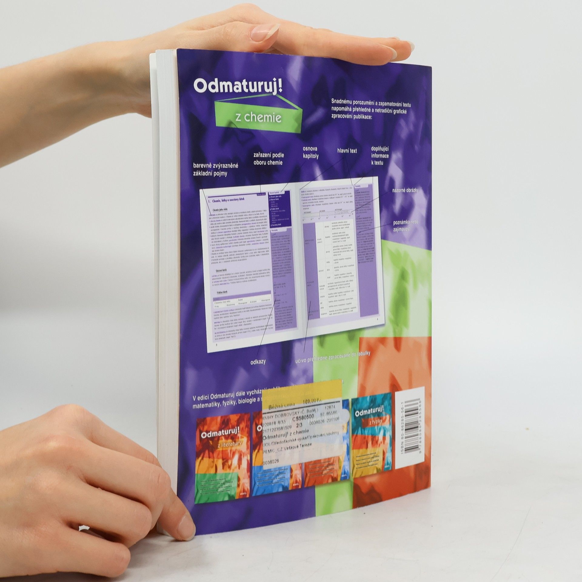 •Poutavá učebnice určená k přípravě na maturitu (i k nové podobě maturity) a k přijímacím zkouškám na vysoké školy. •Obsahuje celou středoškolskou látku chemie, poznatky z obecné chemie, anorganické a organické chemie a biochemie. •Kniha je přehledně zpracována do 38 kapitol, které jsou dále členěny na menší podkapitoly, příp. i menší tematické celky. •Snadnou orientaci v textu podporuje grafické odlišení ústředního textu od doplňujících poznámek a zajímavostí a barevné zvýraznění základních pojmů. •Text je doplněn mnoha přehlednými tabulkami a názornými schématy. •Určeno studentům všech středních škol během celého středoškolského studia, jejich učitelům a ostatním zájemcům o studium chemie.... celý text