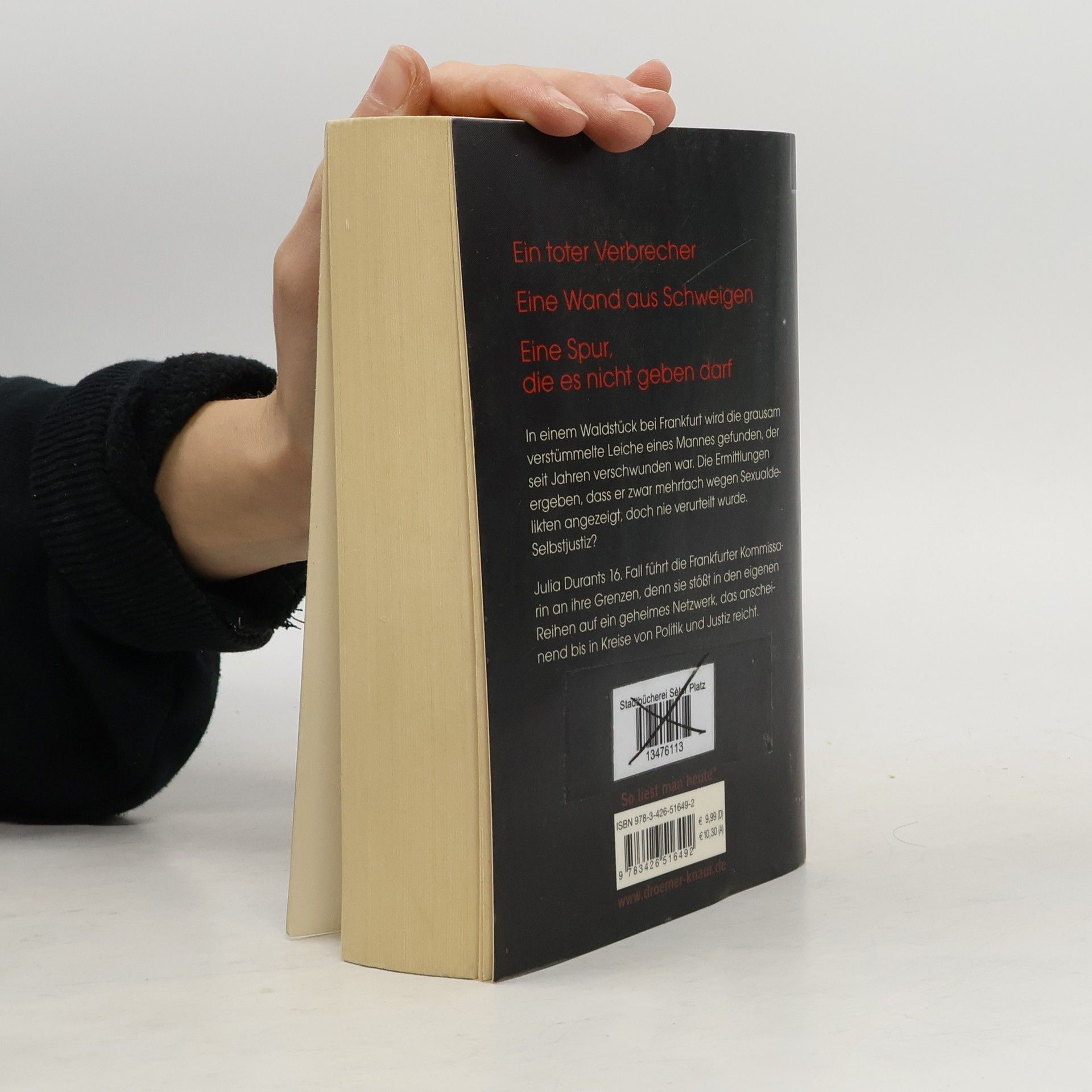 In einem Waldstück bei Frankfurt wird die Leiche eines Sexualstraftäters gefunden, der seit Jahren als vermisst galt. Die Ermittlungen ergeben, dass der Mann zwar mehrfach verdächtigt, doch nie verurteilt wurde. In den Akten tauchen immer wieder derselbe Richter und dieselben Anwälte auf – Zufall? Die brutalen Verletzungen des Mordopfers lassen auf ein sehr persönliches Motiv schließen. Und auf große Wut. Und während Julia Durant sich noch mit der Frage herumschlägt, wem sie hier eigentlich zu Gerechtigkeit verhilft, muss sie erkennen, dass ihr der Gegenwind auch aus den eigenen Reihen entgegenschlägt.