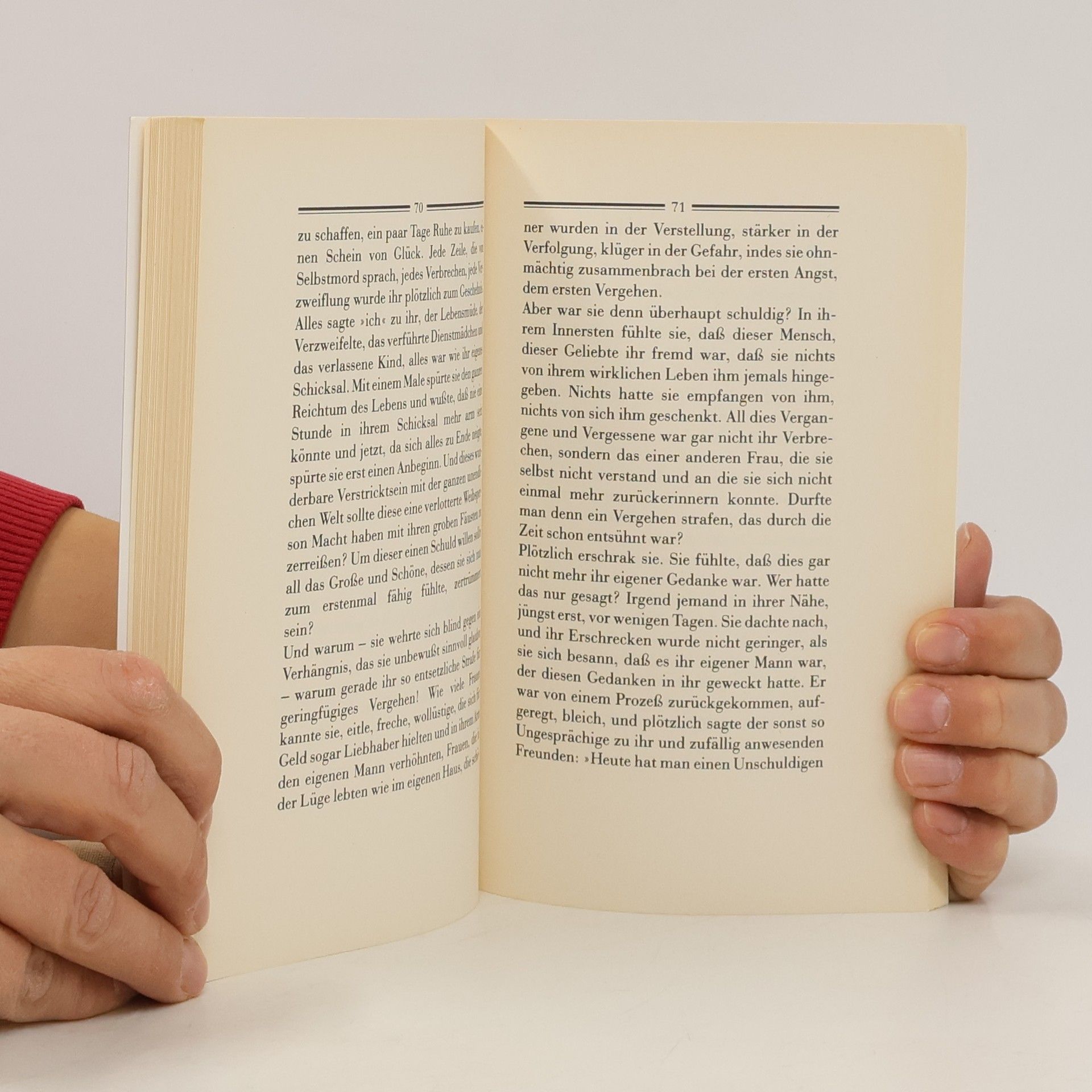 Als Stefan Zweigs ›Angst‹ 1928 zum erstenmal verfilmt wurde, hielt ein französischer Kritiker die Vorlage für eine Novelle von Arthur Schnitzler. Das psychologische Raffinement von Zweigs bereits 1912 geschriebener Erzählung erinnert tatsächlich an Schnitzlers erst acht Jahre später entstandene ›Fräulein Else‹. Stefan Zweig spannt die bewußte Auslosung und Intensivierung der Angst bis zur Krise um eines Eingeständnisses willen in eine Erzählbericht, Dialog und inneren Monolog verbindende Form. Die gedankenlose Müdigkeit ihrer Ehe läßt Irene Wagner trotz ihrer beiden Kinder ein Verhältnis mit einem jungen Musiker eingehen. Sie empfindet vor jedem Rendezvous, indem sie sich »über den Rand ihrer täglichen Gefühle« beugt, »diese erste Angst, in der doch auch Ungeduld« brennt; als aber eine Frau »mit massigem Körper», die ihre heimlichen Wege beobachtet hat, sie zu erpressen beginnt, verliert diese Angst den Reiz des angenehm Vibrierenden. Sie fühlt sich mehr und mehr bedrängt. Ihr Mann versucht ihr zu helfen und gibt ihr ein Beispiel: er veranlaßt in ihrer Gegenwart ihre Tochter zum Geständnis eines kleinen Vergehens, um Nachsicht üben zu können. Irene Wagner entzieht sich diesem Weg; statt sich zu erklären, versucht sie sich Gift zu verschaffen – ihr Mann weiß sie zu hindern und klärt die Situation auf: die »Erpressung als Zwang des Gestehens« war seine Idee, um sie wiederzugewinnen.