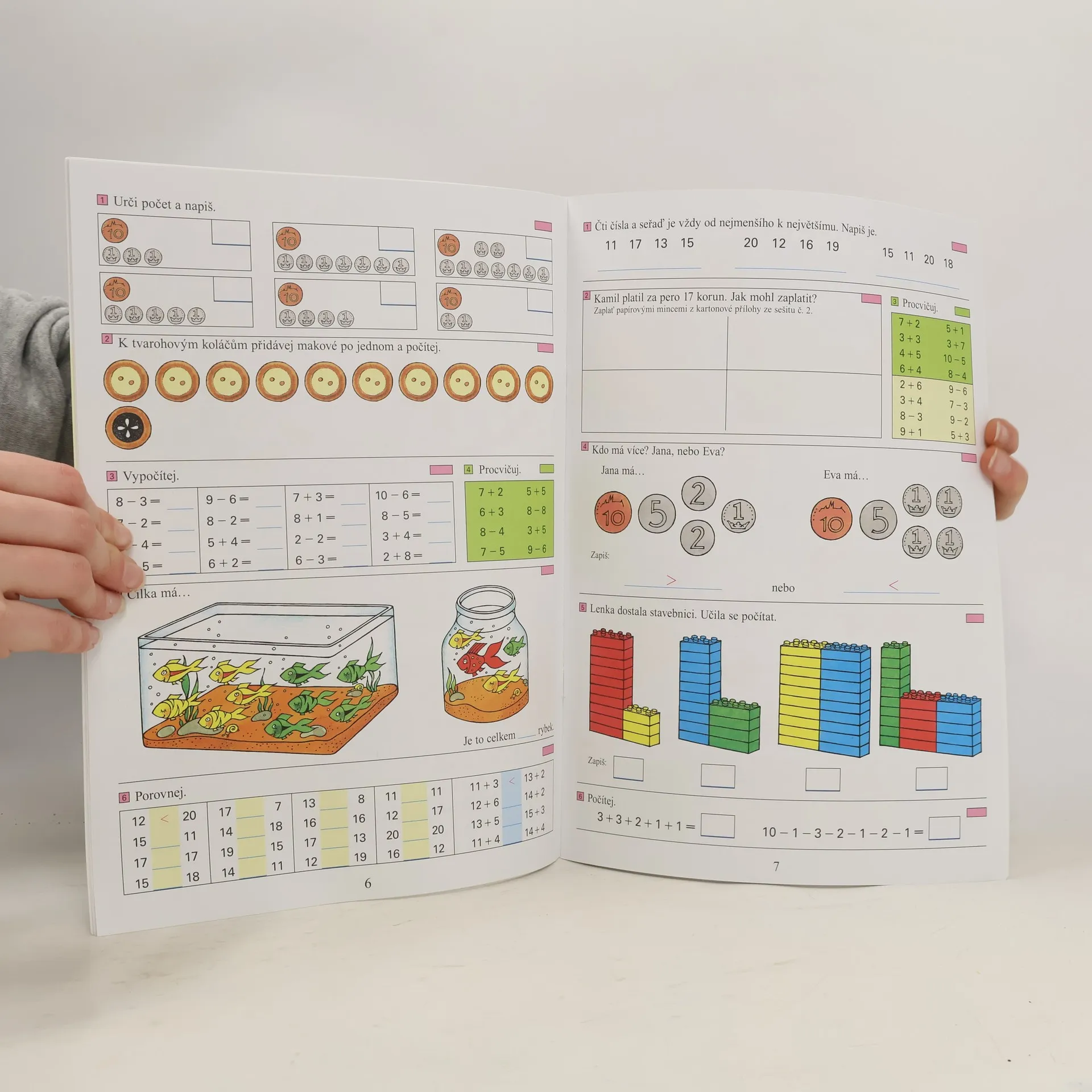 Třetí část pro 1. ročník základních škol Pracovní sešit obsahující numeraci, sčítání a odčítání bez přechodu desítky v oboru čísel do 20 a jednoduché slovní úlohy. Dále obsahuje vztahy o x méně a o x více a výklad některých jednotek a prostorová tělesa.