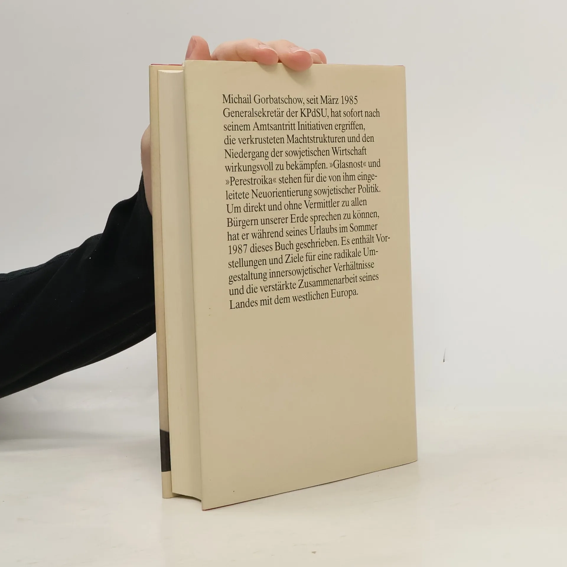 In diesem Buch - 1987 zustandegekommen u.a. auf Bitten eines amerikanischen Verlages - legt der (seit 1985 amtierende) Generalsekretär der KPdSU Wege und Ziele für eine radikale Umgestaltung der sowjetischen Gesellschaft sowie Konzepte einer neuen Politik für Europa und die Welt dar