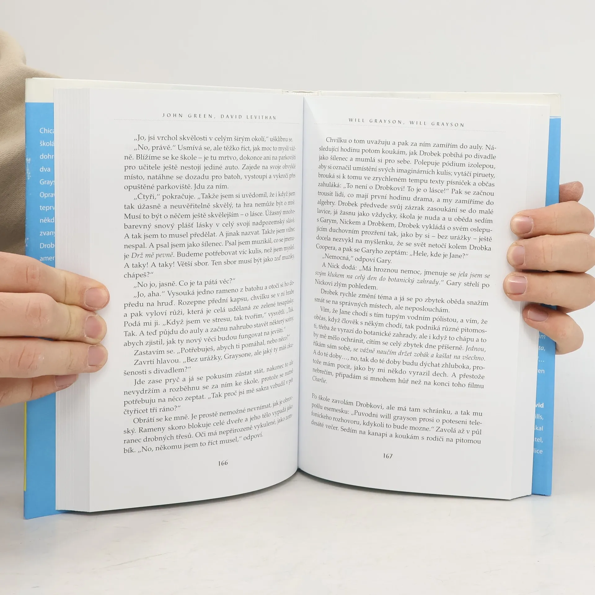 Will Grayson a Will Grayson jsou dva naprosto rozdílní kluci, kteří spolu (kromě jména) nemají vůbec nic společného. Dokonce se ani neznají. Pak se jednoho dne náhodou setkají... Chicago je dost velké město a dva středoškoláky z jeho opačných konců může dohromady svést leda náhoda. A aby se navíc ti dva jmenovali úplně stejně, totiž Will Grayson, musí ta náhoda být hodně veliká. Jenže opravdový spád věci naberou teprve tehdy, když se do všeho vloží ještě někdo třetí – kamarád jednoho z Willů zvaný Drobek, tornádo v lidské podobě. Drobek je střední útočník školního týmu amerického fotbalu, autor, skladatel, producent, režisér a hlavní hvězda nejlepšího muzikálu všech dob, a především věčně zamilovaný gay. A když ten se do něčeho pustí, můžete si být jistí, že při zdi se držet nebude… Oba Willy čeká řada příjemných i méně příjemných překvapení a postupně si budou muset znovu přebrat všechno, co si mysleli o sobě, o lásce i o přátelství.