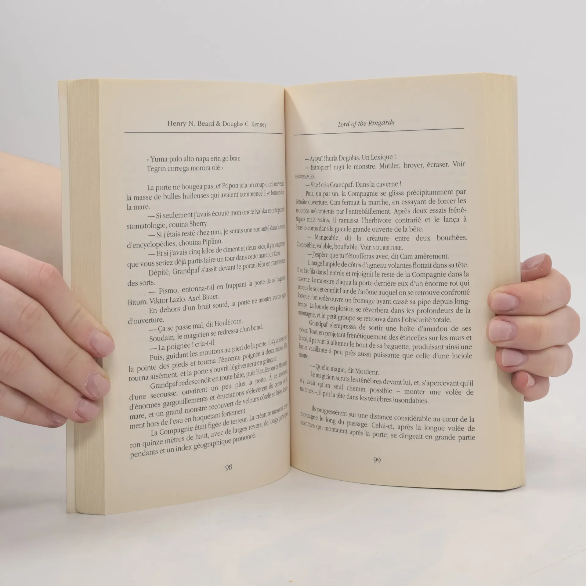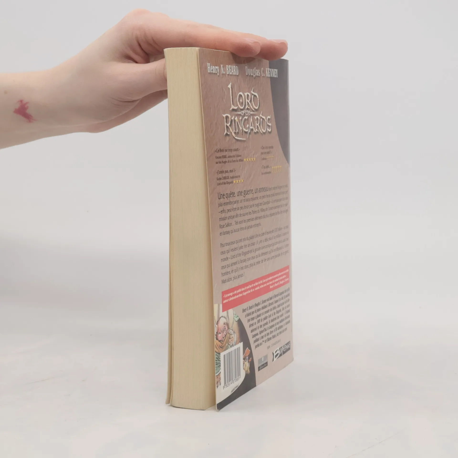 Une quête, une guerre, un anneau dont même Wagner ne veut plus entendre parler, un roi sans royaume, un petit héros poilu nommé Fripon prêt - enfin, peut-être un peu forcé par le magicien Grandpaf - à s'embarquer dans une mission unique afin de sauver les Paires du Milieu de l'asservissement par le maléfique Salkon... Tels sont les premiers éléments du plus déjanté de tous les voyages en fantasy qu'aucun être ait jamais entrepris. Pour tous ceux qui ont pris du plaisir à lire le chef-d'œuvre de J.R.R. Tolkien - ou pour ceux qui veulent juste rire un coup ; il y en a déjà plus d'un million à travers le monde - Lord of the Ringards est la grande rave comique qui convaincra aussi bien ceux qui aiment la fantasy que ceux qui la détestent qu'ils ont dépassé ici l'ultime frontière, et qu'il n'est donc plus la peine de lire une autre parodie de ce genre. Mais alors, plus jamais ! " Cet ouvrage a été publié dans le seul but de se faire du blé. Ceux qui veulent se montrer polis envers un certain auteur s'abstiendront donc d'approcher de ce canular, même avec une lance de combat de trois mètres. " Henry N. Beard & Douglas C. Kenney
