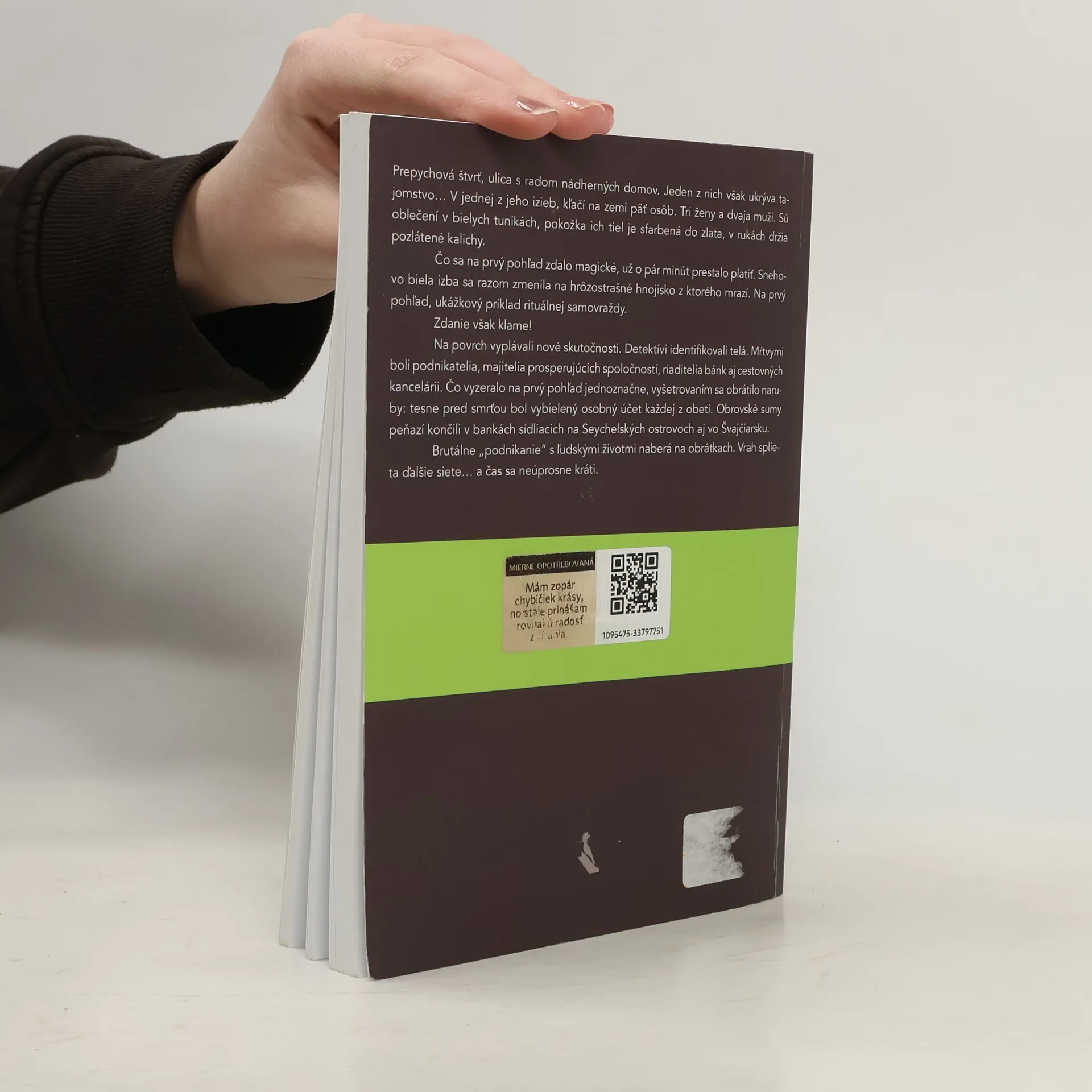 Prepychová štvrť, ulica s radom nádherných domov. Jeden z nich však ukrýva tajomstvo… V jednej z jeho izieb, kľačí na zemi päť osôb. Tri ženy a dvaja muži. Sú oblečení v bielych tunikách, pokožka ich tiel je sfarbená do zlata, v rukách držia pozlátené kalichy. Čo sa na prvý pohľad zdalo magické, už o pár minút prestalo platiť. Snehovo biela izba sa razom zmenila na hrôzostrašné hnojisko z ktorého mrazí. Na prvý pohľad, ukážkový príklad rituálnej samovraždy. Zdanie však klame! Na povrch vyplávali nové skutočnosti. Detektívi identifikovali telá. Mŕtvymi boli podnikatelia, majitelia prosperujúcich spoločností, riaditelia bánk aj cestovných kancelárii. Čo vyzeralo na prvý pohľad jednoznačne, vyšetrovaním sa obrátilo naruby: tesne pred smrťou bol vybielený osobný účet každej z obetí. Obrovské sumy peňazí končili v bankách sídliacich na Seychelských ostrovoch aj vo Švajčiarsku. Brutálne „podnikanie“ s ľudskými životmi naberá na obrátkach. Vrah splieta ďalšie siete - a čas sa neúprosne kráti.