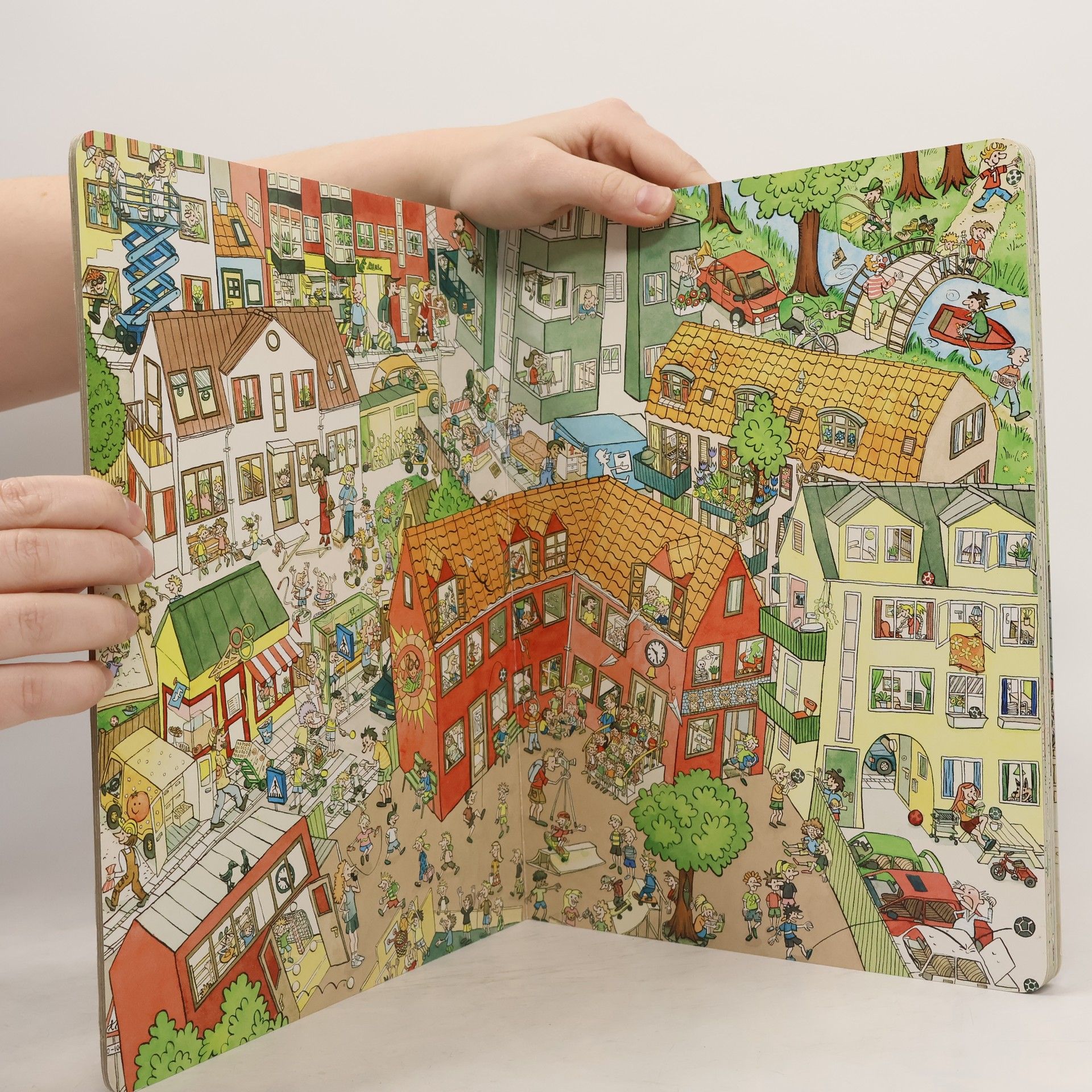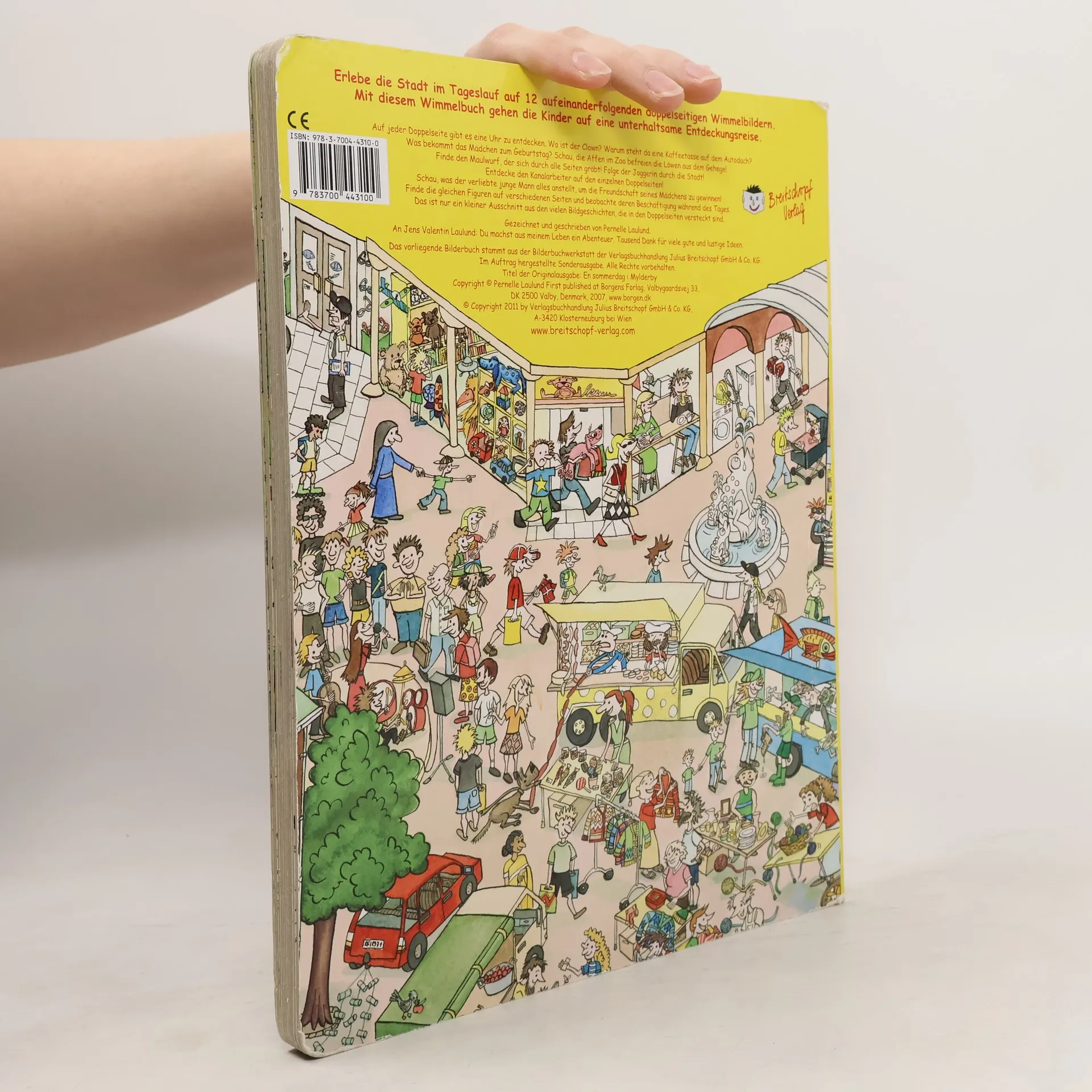 Kinder lieben Wimmelbilder, weil sie nie langweilig werden. Immer wieder gibt's was Neues zu entdecken: Ein einziges Wimmelbild kann unglaublich viele Geschichten erzählen! Man muss sie nur finden... Also auf zur Entdeckungsreise in die bunte, weite Wimmelwelt. Die 12 doppelseitigen Bilder der dänischen Zeichnerin Pernelle Laulund zeigen einen fröhlich-chaotischen Sommertag in der Stadt: im Zoo, auf dem Markt, im Park... Die Suche nach den Geschichten trainiert die Konzentrationsfähigkeit und das Nacherzählen des Gesehenen unterstützt den Spracherwerb. (Verlagstext).