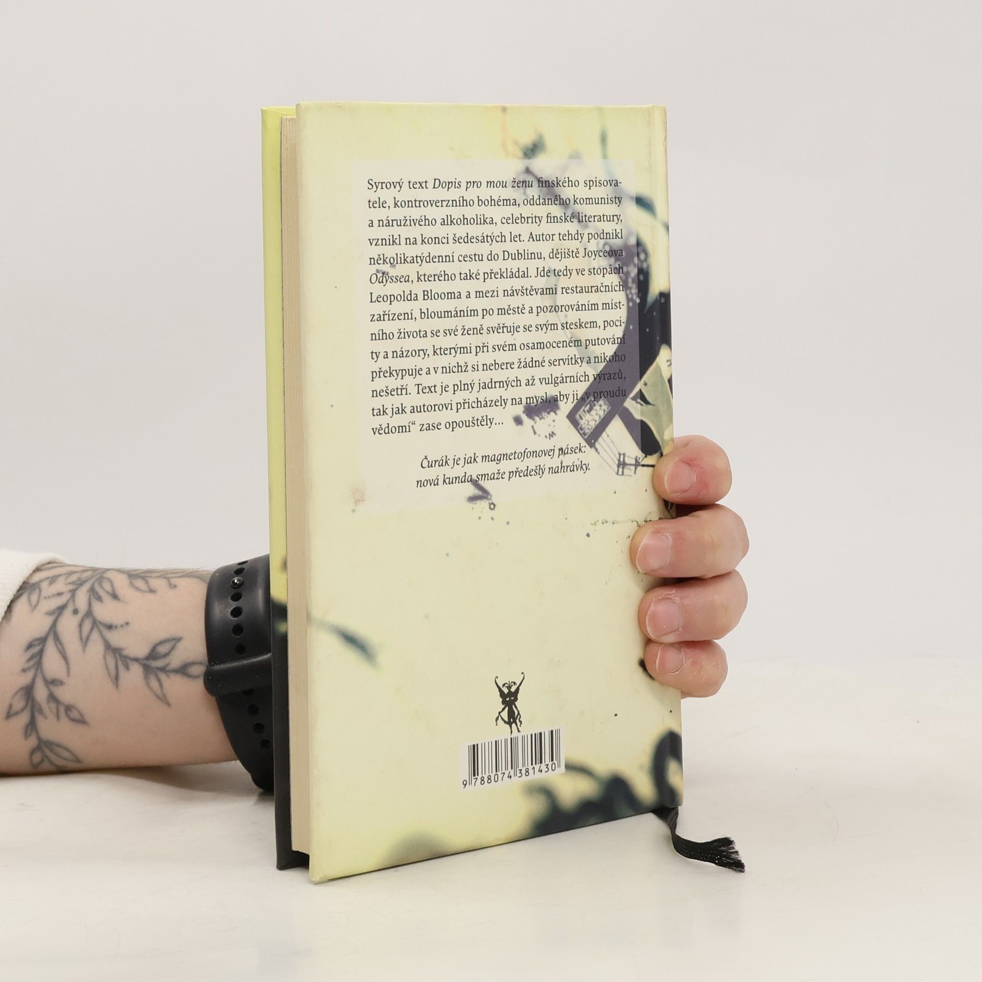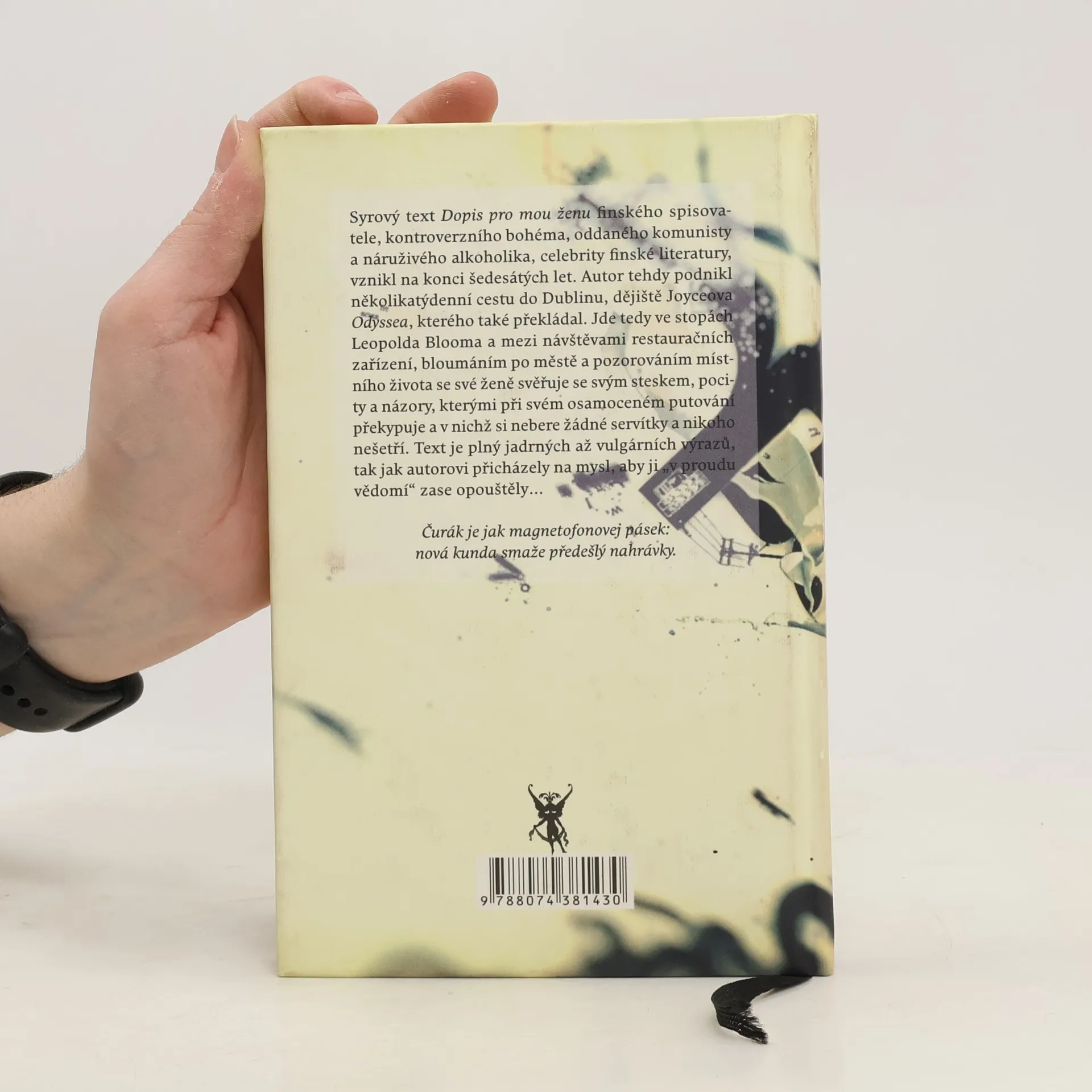 Syrový text Dopis pro mou ženu finského spisovatele, kontroverzního bohéma, oddaného komunisty a náruživého alkoholika, celebrity finské literatury, vznikl na konci šedesátých let. Autor tehdy podnikl několikatýdenní cestu do Dublinu, dějiště Joyceova Odyssea, kterého také překládal. Jde tedy ve stopách Leopolda Blooma a mezi návštěvami restauračních zařízení, bloumáním po městě a pozorováním místního života se své ženě svěřuje se svým steskem, pocity a názory, kterými při svém osamoceném putování překypuje a v nichž si nebere žádné servítky a nikoho nešetří. Text je plný jadrných až vulgárních výrazů, tak jak autorovi přicházely na mysl, aby ji „v proudu vědomí“ zase opouštěly...