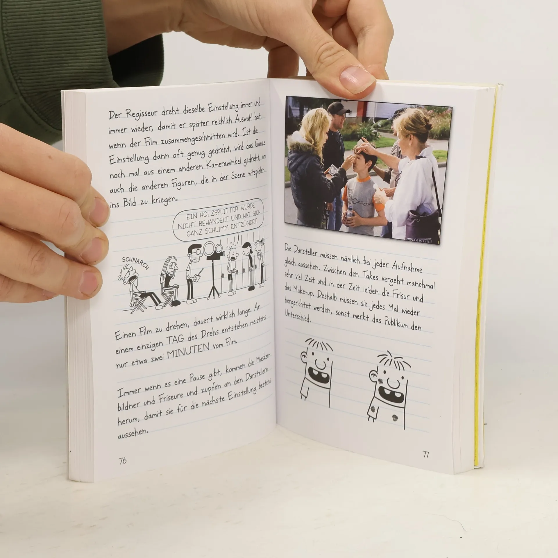 Wer sich immer schon mal gefragt hat, wie ein Film gemacht wird, der ist nicht allein. Dem Autor und Illustrator Jeff Kinney gings nicht anders. Als die 20th Century Fox in Hollywood seinen Bestseller „Gregs Tagebuch“ zu einem Realfilm umsetzte, war die Chance gekommen. Licht ins Dunkel zu bringen. Jeff Kinney konnte miterleben, wie die Bilder aus seinem Buch das Laufen lernen und wie aus einem Buch ein erfolgreicher Kinofilm wird. Das alles hat er in seiner unvergleichlich lustigen und komischen Art aufgeschrieben und -gezeichnet. Und so können alle großen und kleinen Fans von Greg mit ihm hinter die Kulissen von Hollywood schauen. Von der ersten bis zur letzten Seite voll mit Fotografien, Drehbuchseiten, Storyboard-Sketchen, lustigen Kulissen- und Kostümbildern sowie Original-Zeichnungen von Jeff Kinney speziell für diesen Band ist es das ideale Begleitbuch zum Film und ein weiterer genialer GREG-Lesespaß!