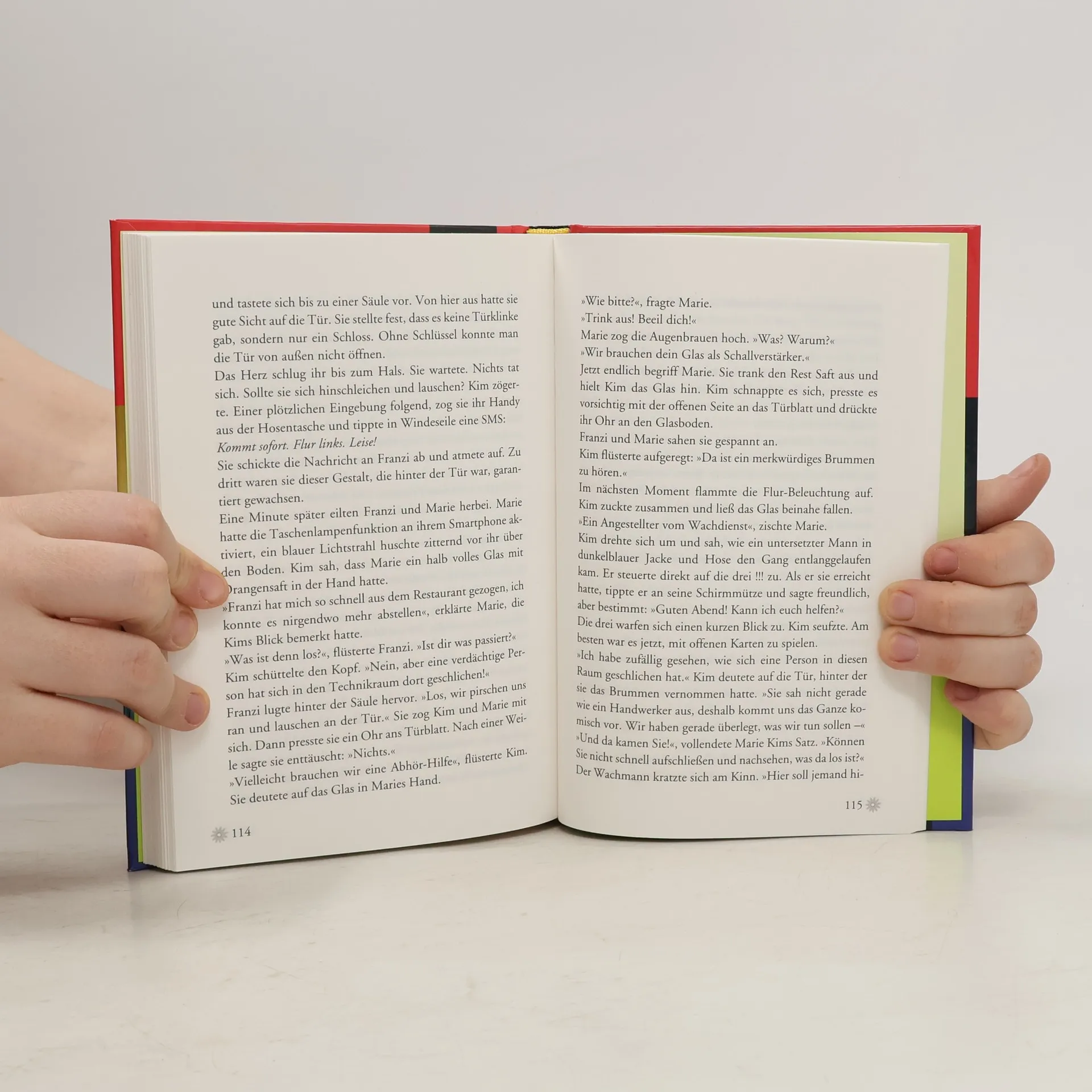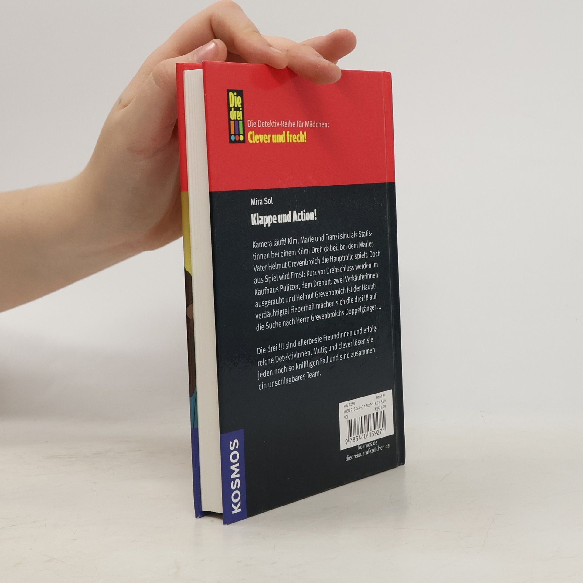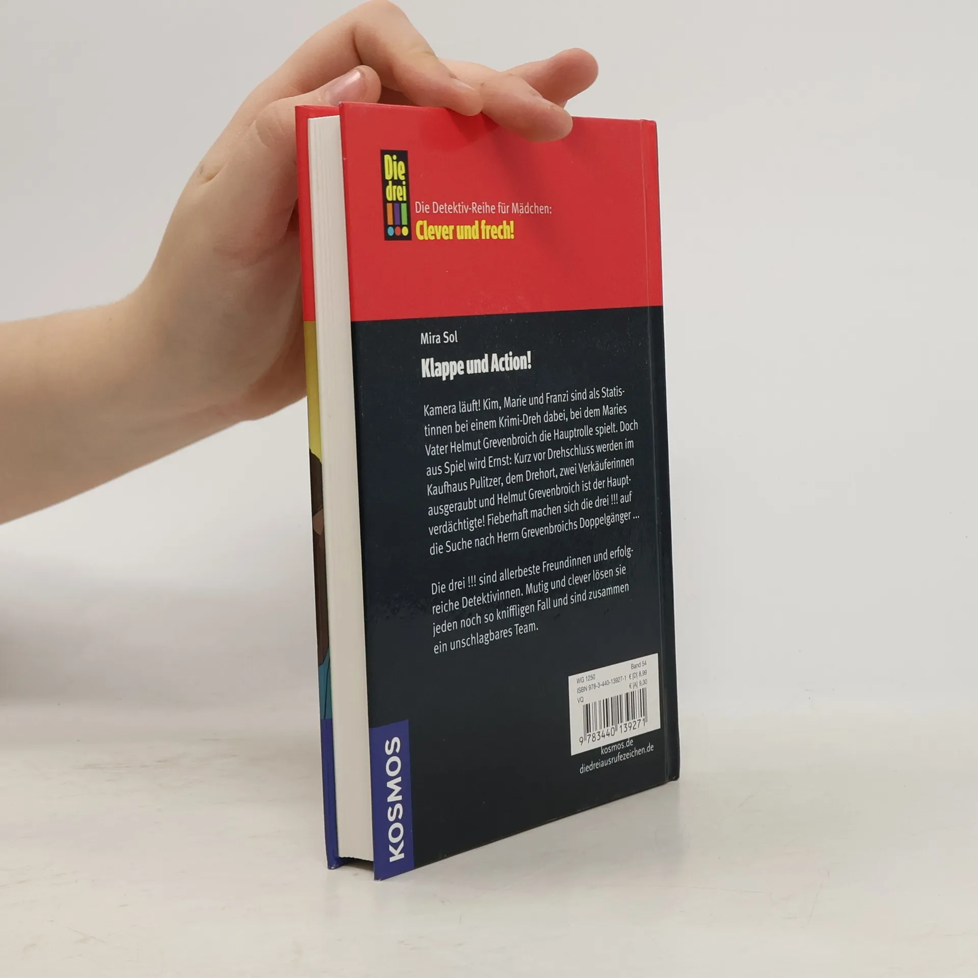 Kim, Franzi und Marie sind Die drei !!!. Mutig und clever ermitteln die drei Freundinnen und sind jedem Fall gewachsen. Kim, Marie und Franzi sind als Statistinnen bei einem Krimi-Dreh dabei. Doch aus Spiel wird Ernst: Kurz vor Drehschluss werden im Kaufhaus zwei Verkäuferinnen ausgeraubt. Plötzlich ist Maries Vater der Hauptverdächtige. Gibt es einen kriminellen Doppelgänger?