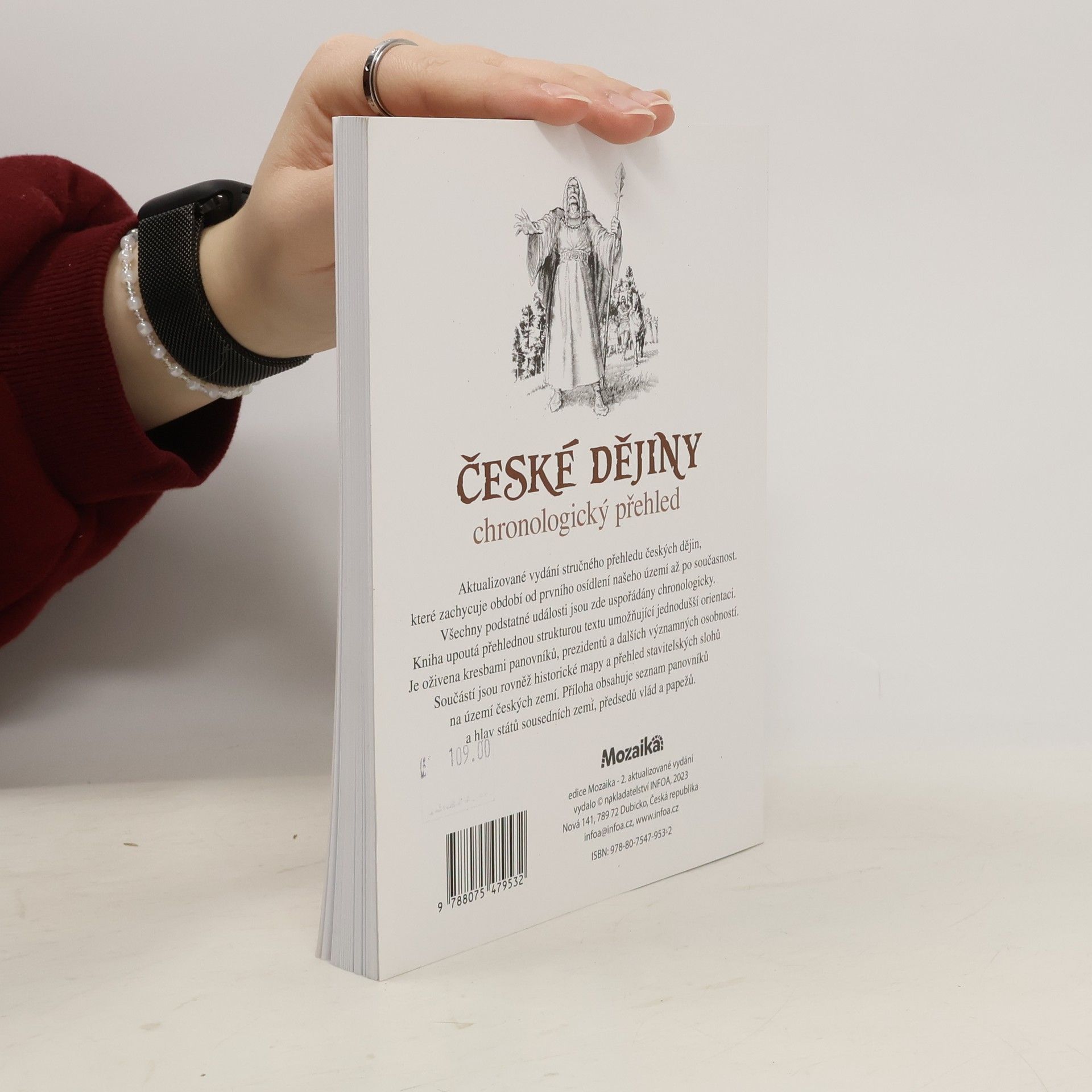 Všechny podstatné události jsou zde uspořádány chronologicky. Kniha upoutá přehlednou strukturou textu umožňující jednodušší orientaci. Je oživena kresbami panovníků, prezidentů a dalších významných osobností. Součástí jsou rovněž historické mapy a přehled stavitelských slohů na území českých zemí. Příloha obsahuje seznam panovníků a hlav států sousedních zemí, předsedů vlád a papežů. Aktualizované vydání stručného přehledu českých dějin, které zachycuje období od prvního osídlení našeho území až po současnost.