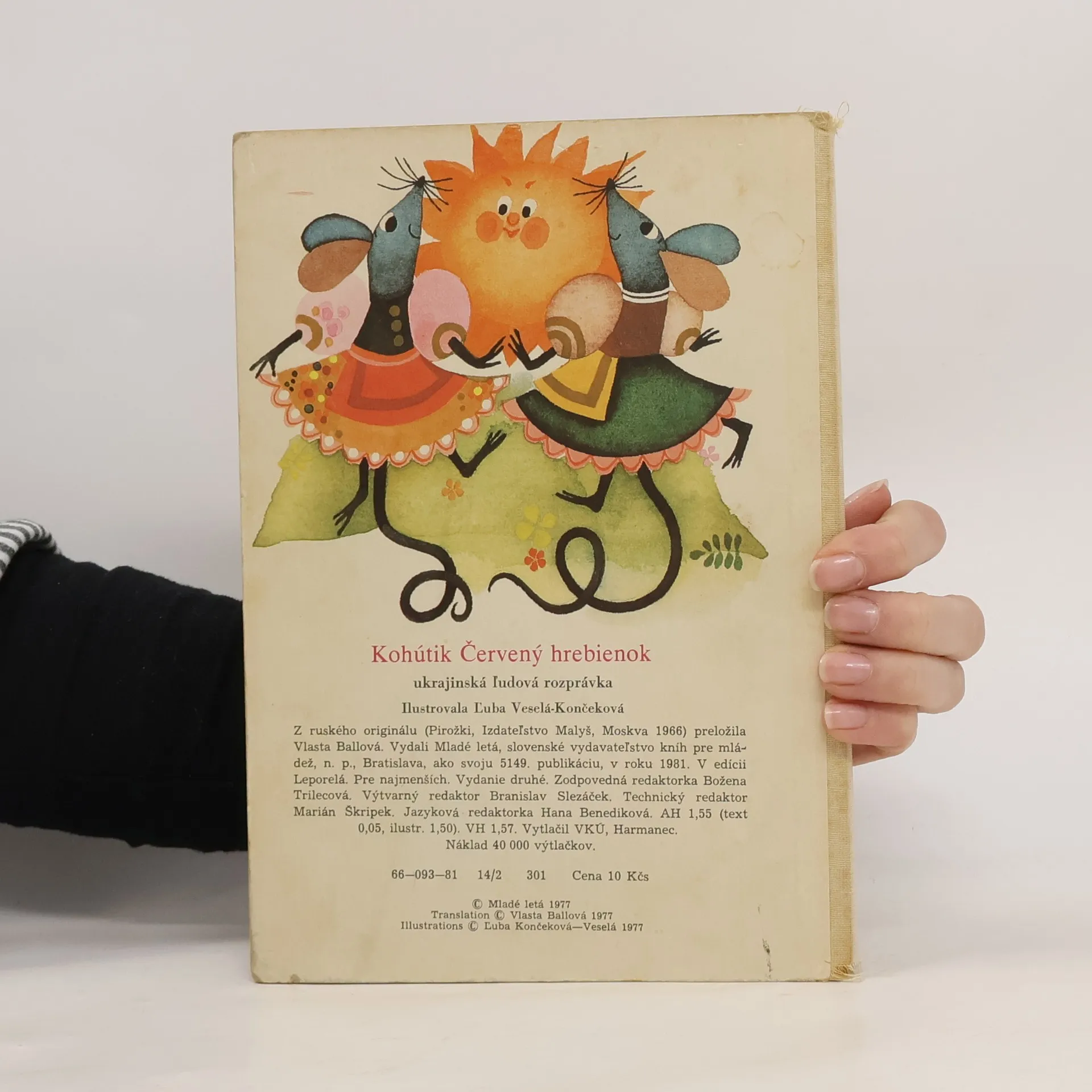 Kohútik Červený hrebienok. Ukrajinská ľudová rozprávka, Ľuba Končeková Veselá, Vlasta Ballová