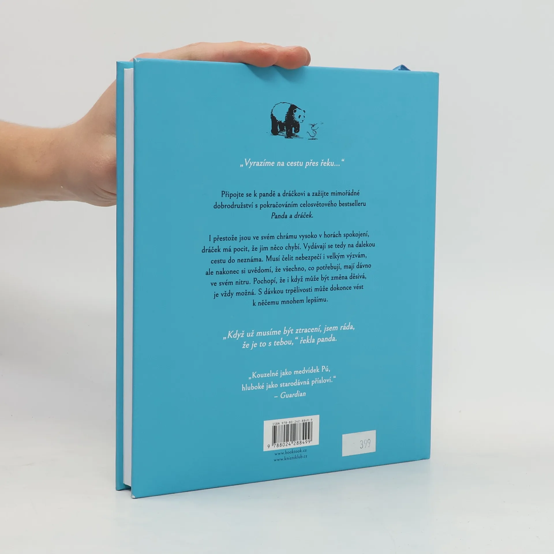 Pokračování mezinárodně úspěšného inspirativního příběhu dvou nerozlučných přátel, který vás pohladí na duši. Dráček se cítí nešťastný, a proto se se svým trápením svěří pandě. Moudrá panda ho nasměruje na cestu, která je sice odvádí dál od domova, ale blíž k sobě samým. Prozkoumávají nová místa, prožívají nevšední zážitky a čelí náročným výzvám. Také dráčkovo srdce se začíná pomalu hojit. Při svém putování zjišťují, že změny a výzvy jsou přirozenou součástí života a jsou nezbytné pro další růst. Laskavá knížka, která čtenáři jakéhokoli věku předá poselství starodávné moudrosti, potěší hřejivým humorem a zároveň poskytne útěchu všem nepokojným duším.