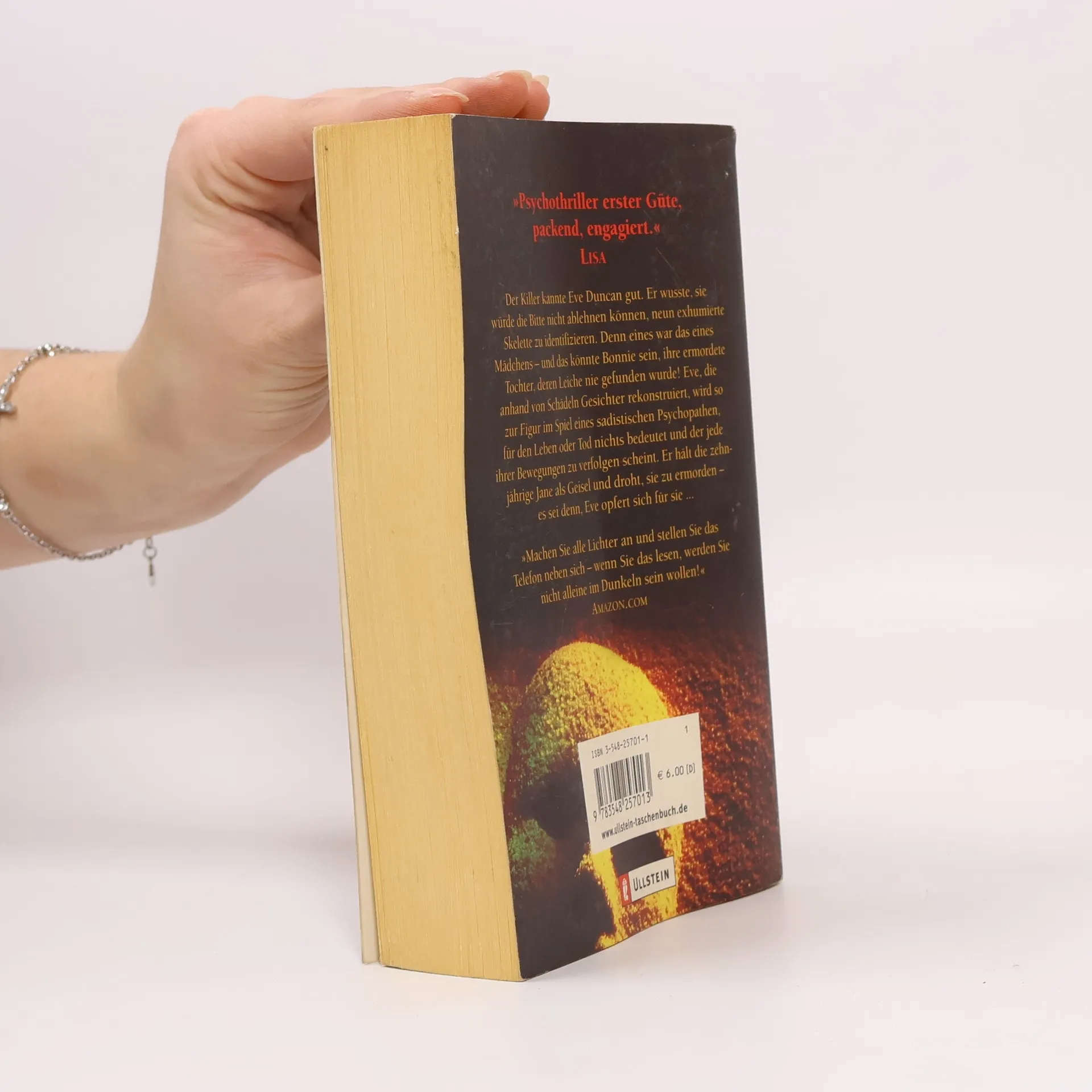 9 Skelette werden gefunden, darunter das eines kleinen Mädchens, das die ermordete Tochter von Eve Duncan, forensische Präparatorin der Gerichtsmedizin, sein könnte. Bevor sie mit der Rekonstruktion beginnen kann, wird der Schädel gestohlen und ein psychopathischer Serienkiller drangsaliert sie mit seinen Anrufen. Merkwürdigerweise weiss er alles über sie und hetzt sie in einen Wettlauf um Leben und Tod, denn er beschreibt ihr immer wieder seine nächsten Opfer.