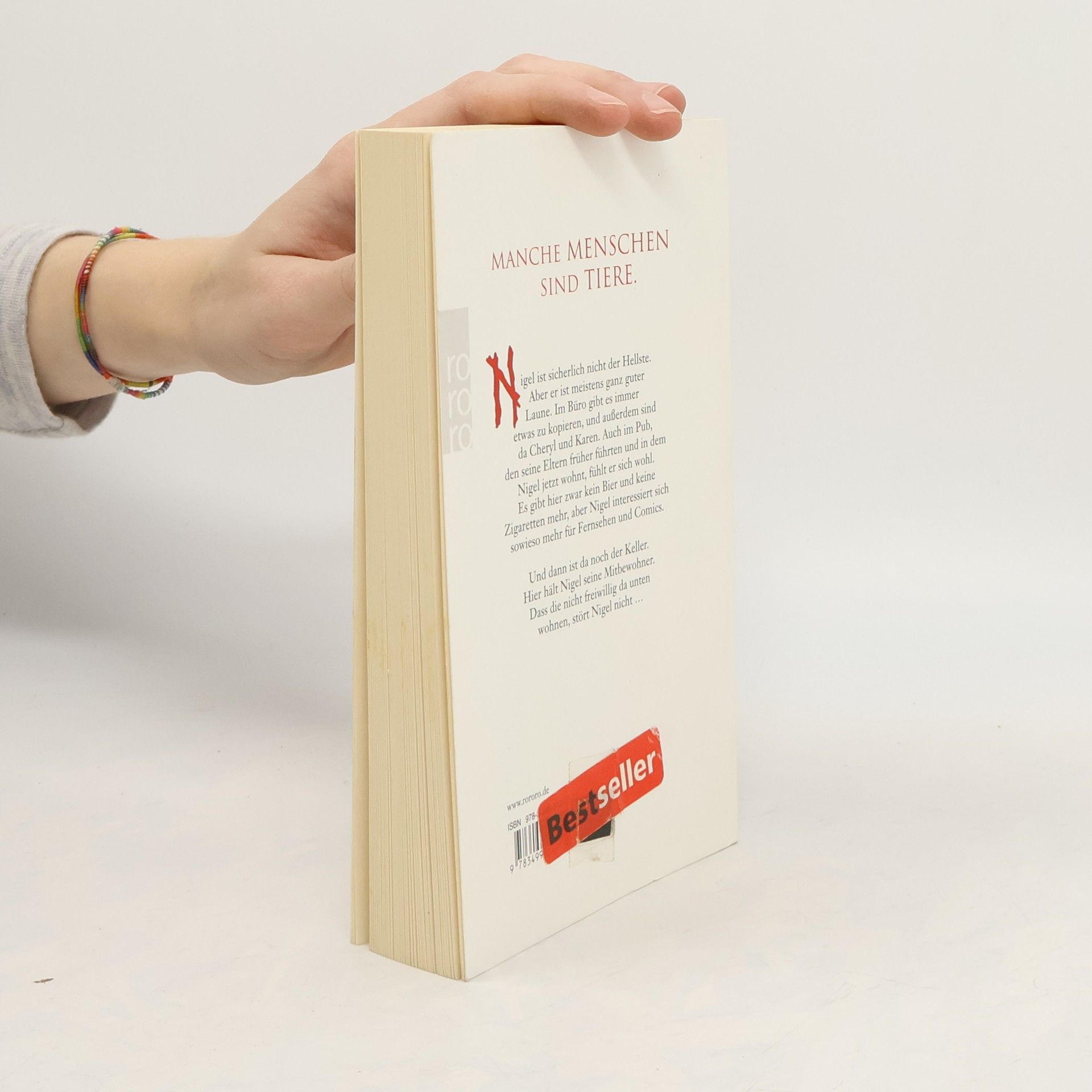 Manche Menschen sind Tiere.Nigel ist sicherlich nicht der Hellste. Aber er ist meistens ganz guter Laune. Im Büro gibt es immer etwas zu kopieren, und außerdem sind da Cheryl und Karen. Auch im Pub, den seine Eltern früher führten und in dem Nigel jetzt wohnt, fühlt er sich wohl. Es gibt hier zwar kein Bier und keine Zigaretten mehr, aber Nigel interessiert sich sowieso mehr für Fernsehen und Comics.Und dann ist da noch der Keller. Hier hält Nigel seine Mitbewohner. Dass die nicht freiwillig da unten wohnen, stört Nigel nicht …