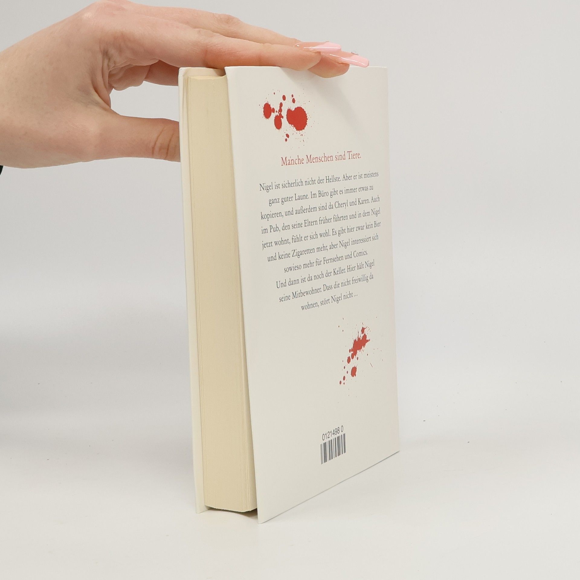 Manche Menschen sind Tiere.Nigel ist sicherlich nicht der Hellste. Aber er ist meistens ganz guter Laune. Im Büro gibt es immer etwas zu kopieren, und außerdem sind da Cheryl und Karen. Auch im Pub, den seine Eltern früher führten und in dem Nigel jetzt wohnt, fühlt er sich wohl. Es gibt hier zwar kein Bier und keine Zigaretten mehr, aber Nigel interessiert sich sowieso mehr für Fernsehen und Comics.Und dann ist da noch der Keller. Hier hält Nigel seine Mitbewohner. Dass die nicht freiwillig da unten wohnen, stört Nigel nicht …