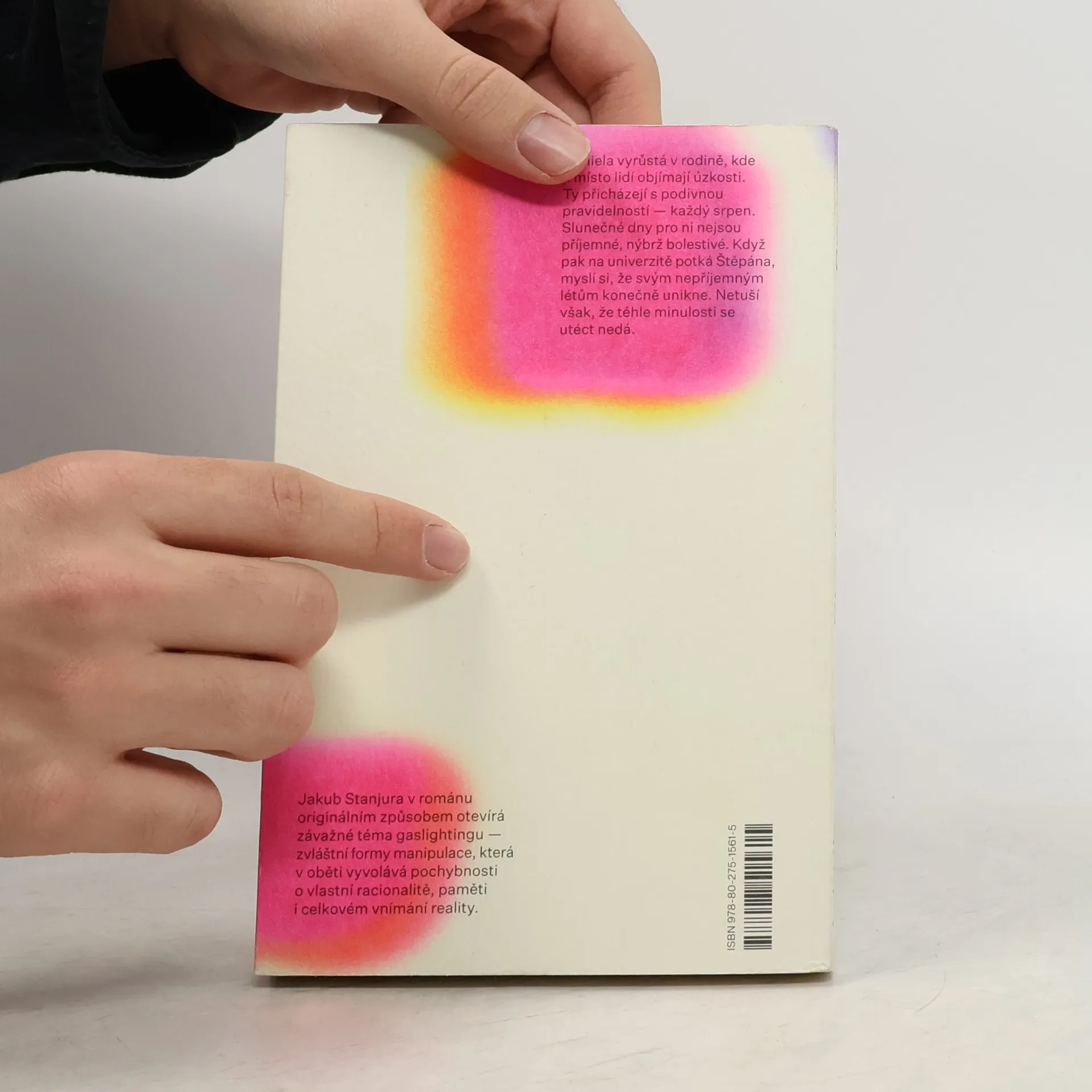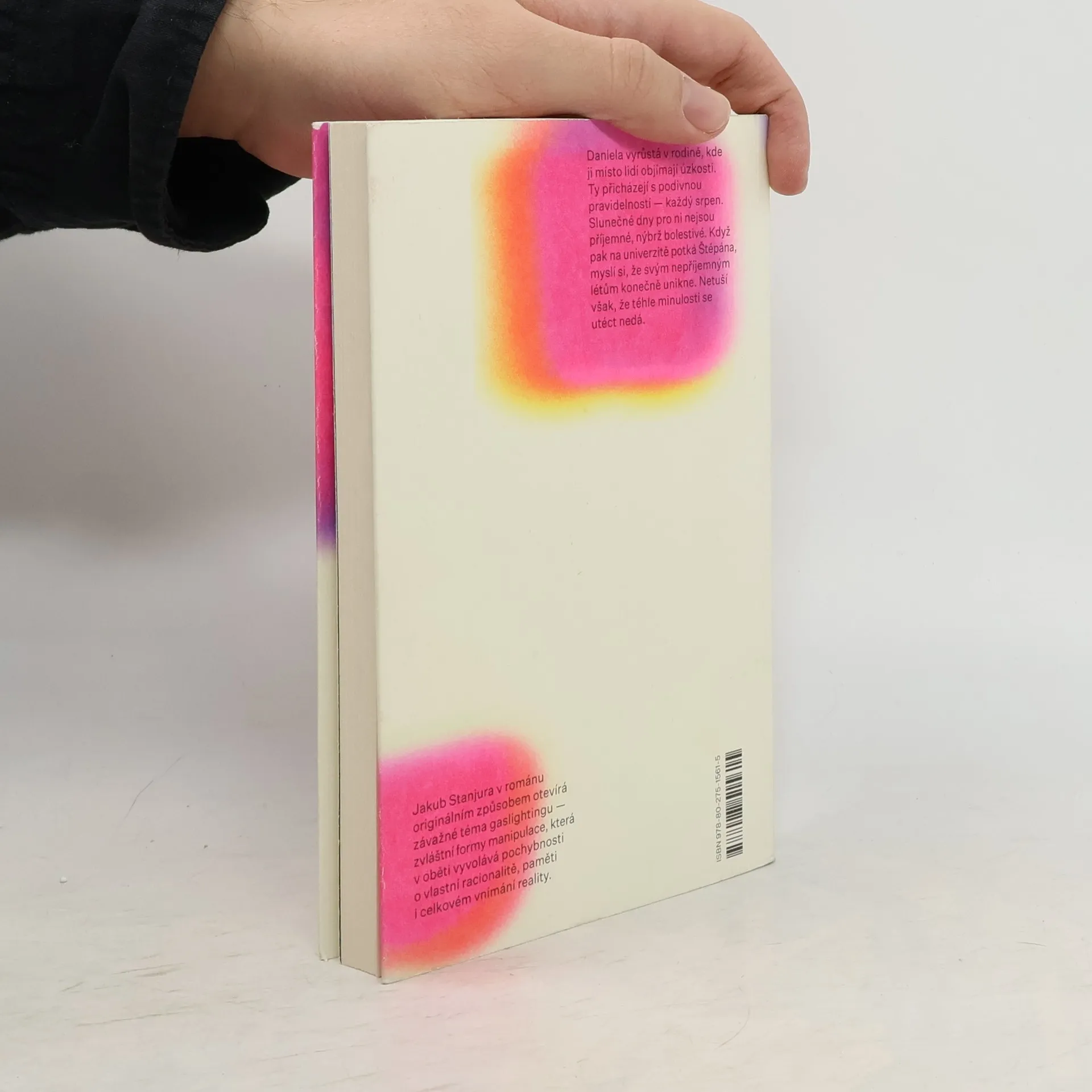 Kam až jsme schopni kvůli tomu druhému zajít? Daniela vyrůstá v rodině, kde ji místo lidí objímají úzkosti. Ty přicházejí s nevysvětlitelnou pravidelností — každý srpen. Slunečné dny pro ni nejsou příjemné, nýbrž bolestivé. Když pak na univerzitě potká Štěpána, myslí si, že svým nepříjemným létům konečně unikne. Netuší však, že téhle minulosti se utéct nedá.Jakub Stanjura v románu originálním způsobem otevírá závažné téma gaslightingu — zvláštní formy manipulace, při níž oběť zpochybňuje vlastní racionalitu, paměť i celkové vnímání reality.