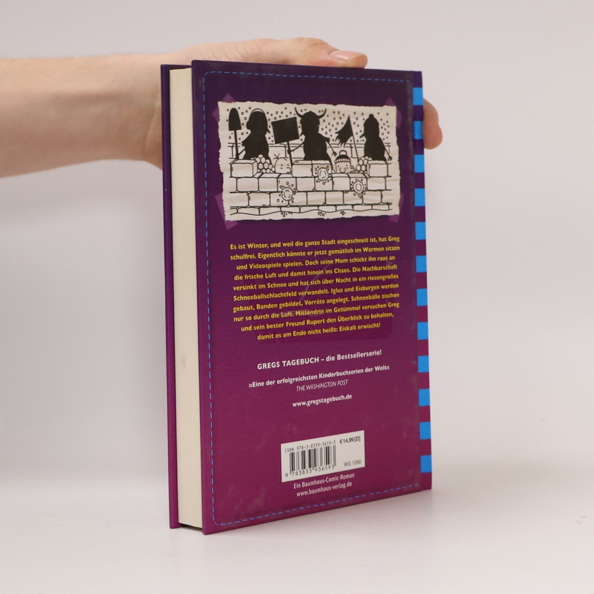 Es ist Winter, und weil die ganze Stadt eingeschneit ist, hat Greg schulfrei. Eigentlich könnte er jetzt gemütlich im Warmen sitzen und Videospiele spielen. Doch seine Mom schickt ihn raus an die frische Luft und damit hinein ins Chaos. Die Nachbarschaft versinkt im Schnee und hat sich über Nacht in ein riesengroßes Schneeballschlachtfeld verwandelt. Iglus und Eisburgen werden gebaut, Banden gebildet, Vorräte angelegt. Schneebälle zischen nur so durch die Luft. Mittendrin im Getümmel versuchen Greg und sein bester Freund Rupert den Überblick zu behalten, damit es am Ende nicht heißt: Eiskalt erwischt!