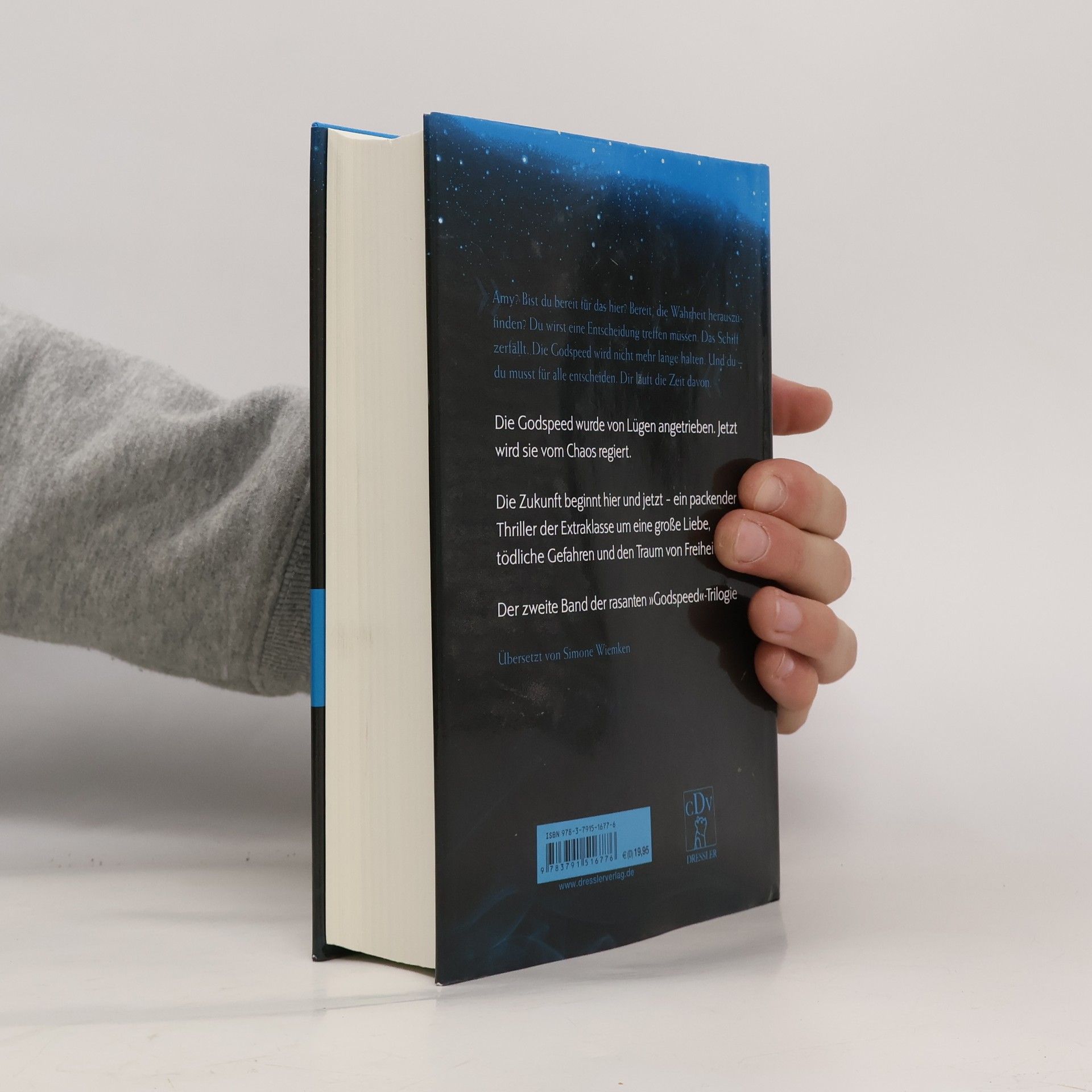 Spannung und Gefühl. Nicht von dieser Welt! Die Zukunft für Amy und Junior liegt in weiter Ferne. Während ihre Gefühle füreinander stärker werden, wird die Lage auf dem Raumschiff, der „Godspeed“, immer bedrohlicher. Ohne die kontrollierende Droge Phydus, das heißt ihrem freien Willen unterworfen, sind die Menschen an Bord überfordert. Die Stimmung droht zu kippen. Auch die Technik entpuppt sich als trügerisch: Wird nur eine Gruppe Auserwählter das Ziel, die Zentauri-Erde, erreichen? Der Druck auf Amy und Junior wächst: Wer ist Freund, wer Feind? Und wohin führt sie ihre Liebe? Der zweite Band der spektakulären Godspeed-Trilogie ist ein Genre-Mix aus Dystopie, Sci-Fi-Thriller und Romantik. Auch als