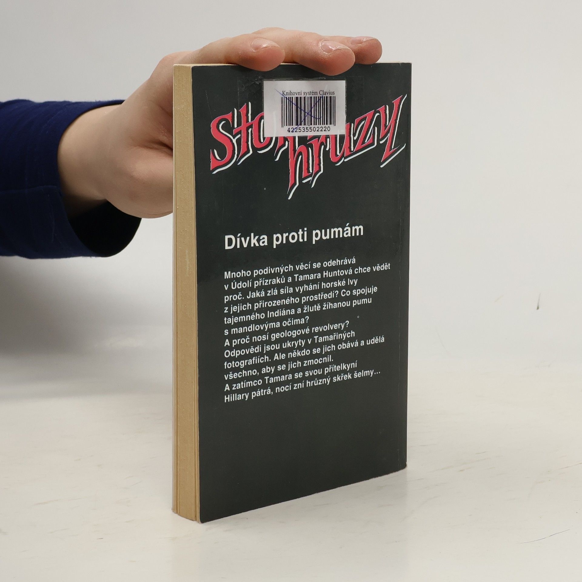 Mnoho podivných věcí se odehrává v Údolí přízraků a Tamara Huntová chce vědět proč. Jaká zlá síla vyhání horské lvy z jejich přirozeného prostředí? Co spojuje tajemného Indiána a žlutě žíhanou pumu s mandlovýma očima? A proč nosí geologové revolvery? Odpovědi jsou ukryty v Tamařiných fotografiích. Ale někdo se jich obává a udělá všechno, abych se jich zmocnil. A zatímco Tamara se svou přítelkyní Hillary pátrá, nocí zní hrůzný skřek šelmy…... celý text