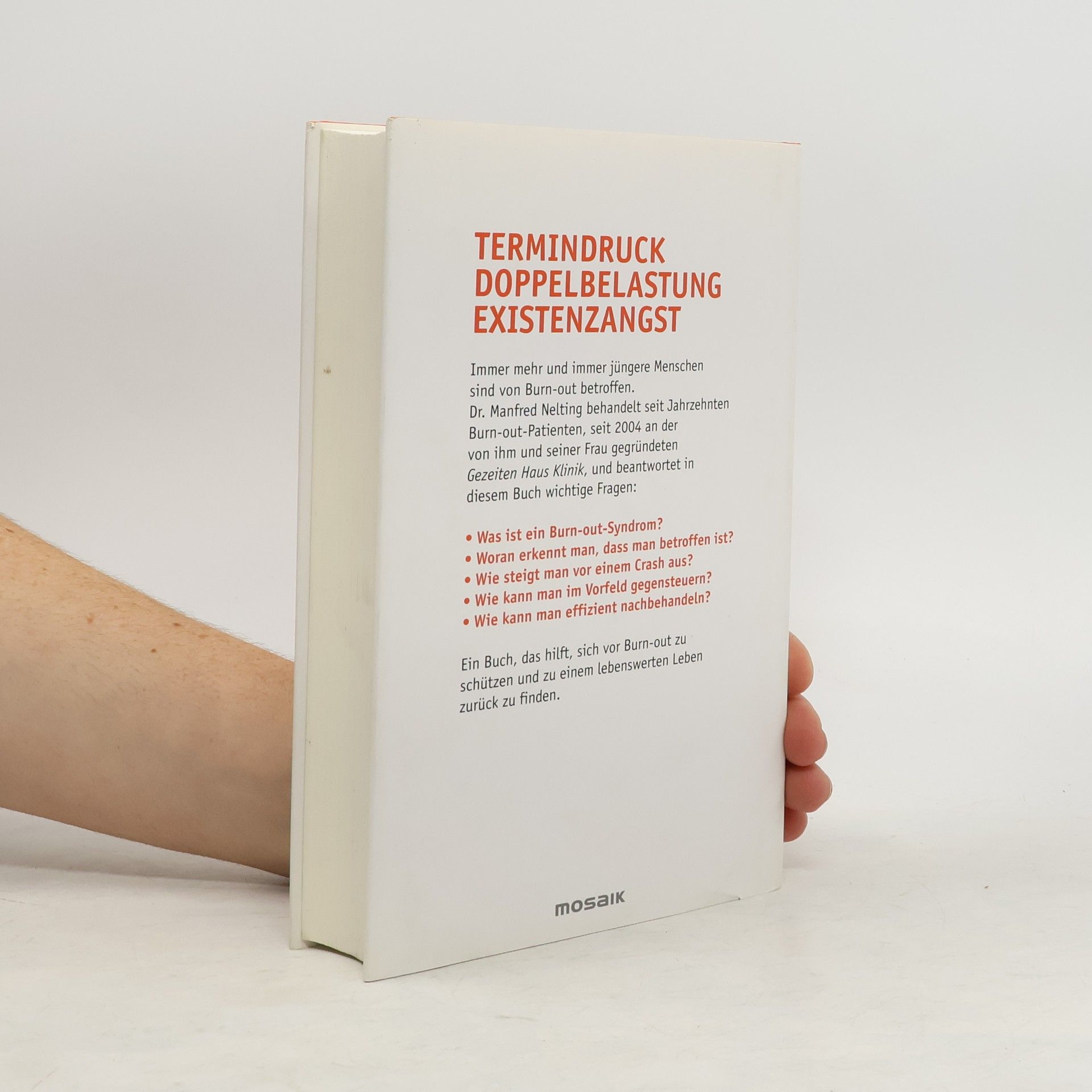 Die Volkskrankheit Burnout - das neue Standardwerk für Betroffene und Angehörige Verbrennen der Kräfte – bis 'der Ofen aus' ist. Unsere Gesellschaft fordert die Menschen heute oft dauerhaft auf, über ihre Grenzen zu gehen. Dieser Herausforderung ist kaum jemand gewachsen, der Überforderte zeigt schließlich gefährliche Symptome: Er ist kraftlos, verzweifelt, schläft immer schlechter, wird krank. In eine solche Situation kann jeder Mensch geraten – egal, wie gesund er vorher war. Mit höchster praktischer und theoretischer Kompetenz und in hervorragend anschaulicher Weise informiert der Autor über Wesen und Verlauf der Krankheit, über die Möglichkeiten medizinischer, psychologischer Behandlung sowie über klare Alltagsregeln, mit denen sich jeder schützen kann. Burnout: erkennen, vorbeugen und heilen.