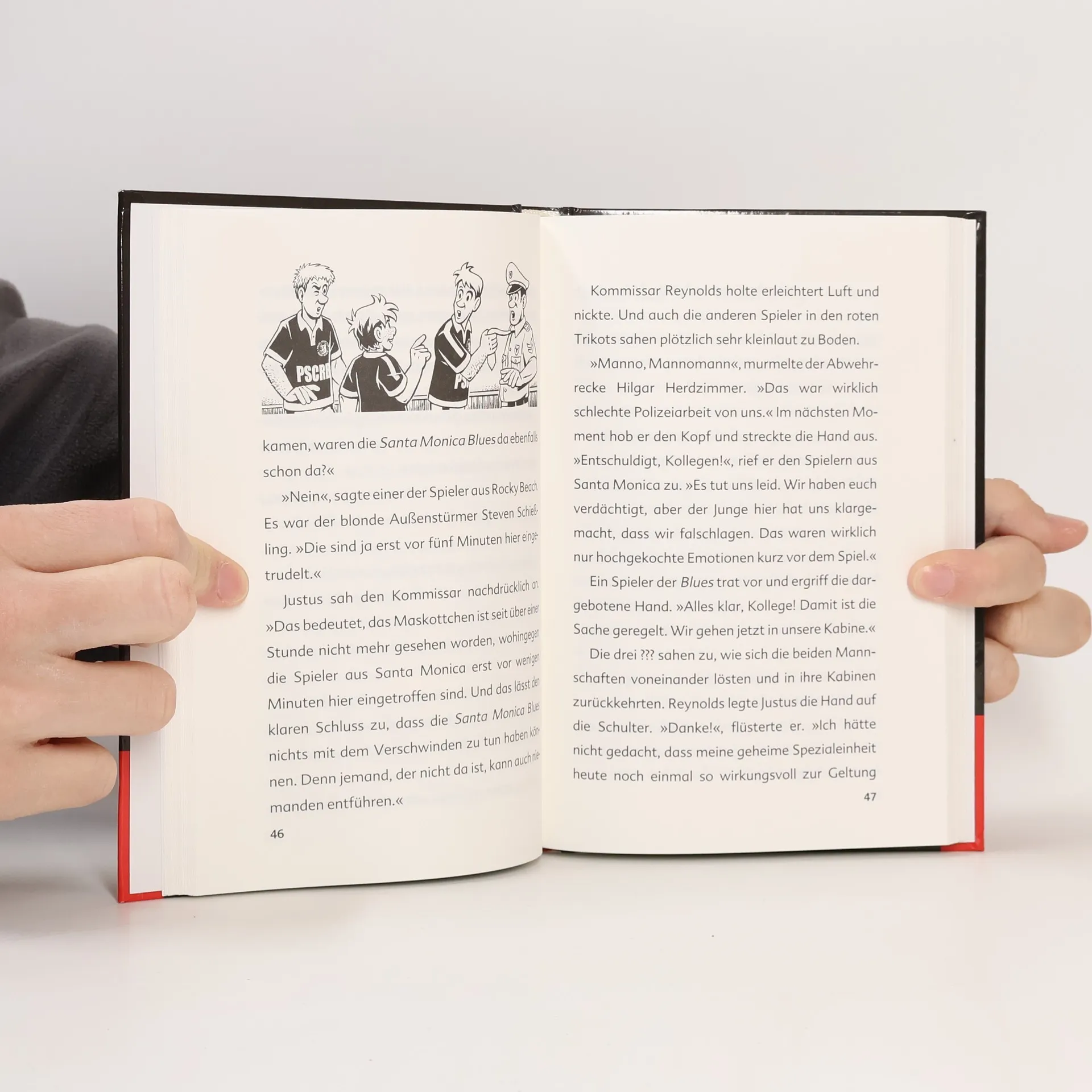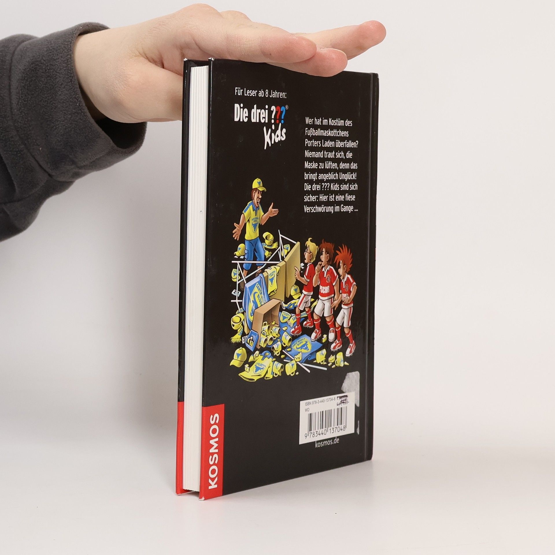 Pech für den FC Rocky Beach: Das Maskottchen muss ins Gefängnis! Aber wer steckte bei dem Überfall auf Porters Laden in dem Kostüm? Niemand traut sich, sie Maske zu lüften, denn das bringt angeblich Unglück. Kein Zweifel für Justus, Peter und Bob, dass hier eine fiese Verschwörung im Gange ist ...
